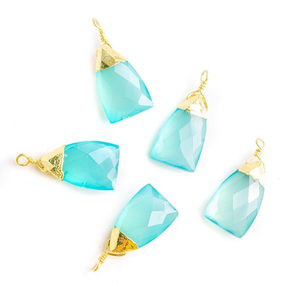 20x9mm Gold Leafed Seafoam Blue Chalcedony Faceted Triangle Focal Pendant 1 Piece