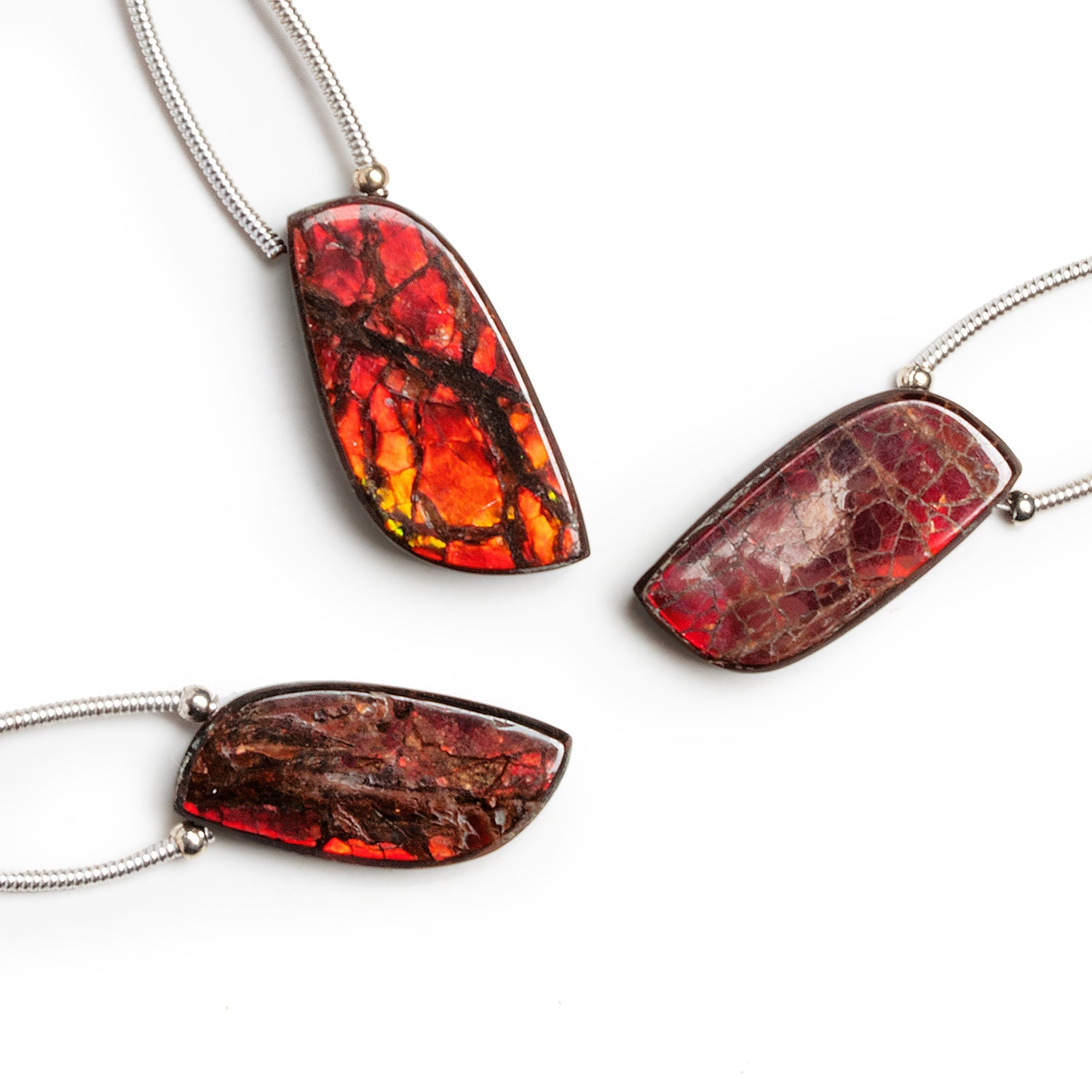 A true geological wonder, these Ammolite focal beads showcase the mesmerizing iridescence and natural beauty that make Ammolite one of the rarest and most coveted organic gemstones in the world. Formed over 70 million years ago from the fossilized shells of ammonites, Ammolite is found primarily along the eastern slopes of the Rocky Mountains in Alberta, Canada. This extraordinary gem captures the essence of Earth's prehistoric history while dazzling with its vibrant, kaleidoscopic hues.