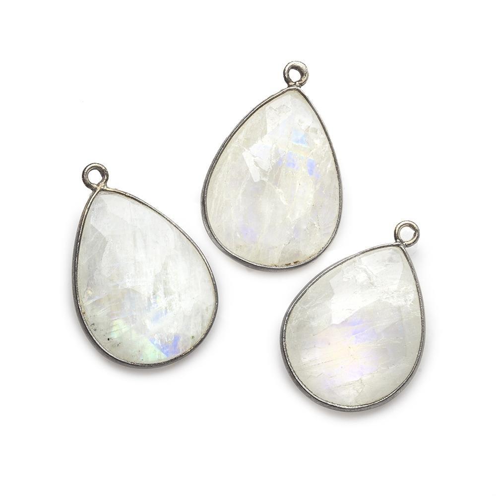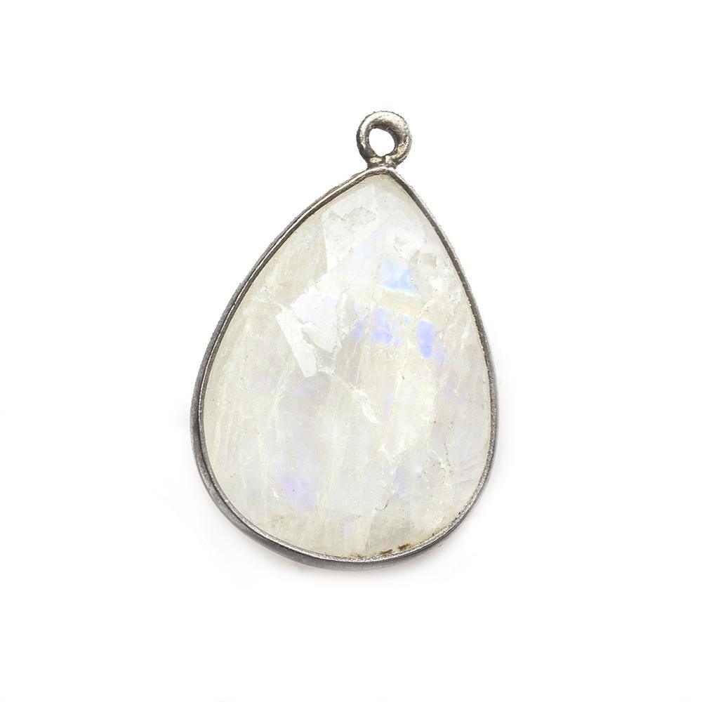 21x16mm Black Gold .925 bezel Rainbow Moonstone Faceted Pear Pendant 1 focal bead