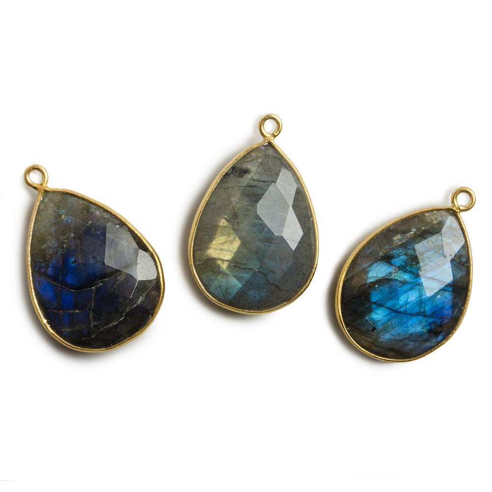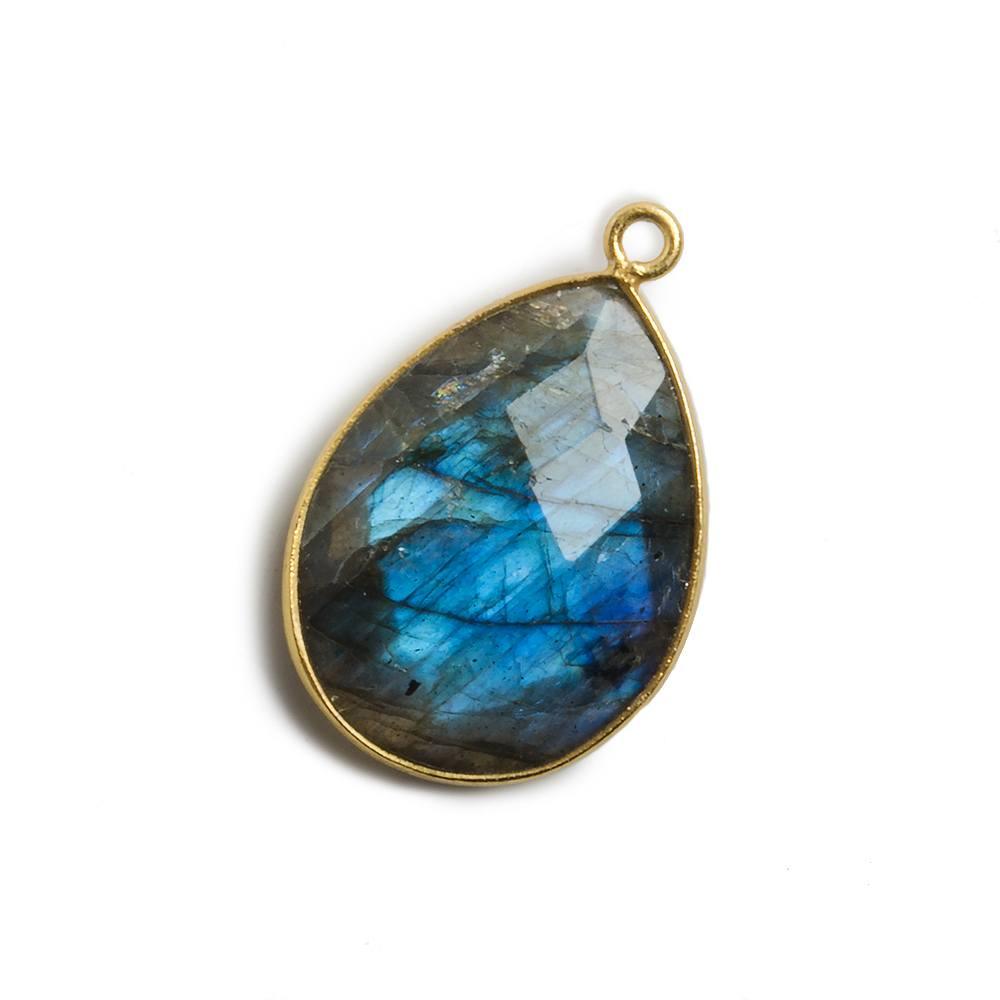 21x16mm Labradorite faceted pear Vermeil Bezel Charm 1 ring Pendant in a B grade material showing beautiful flash and heavy internal characteristics.