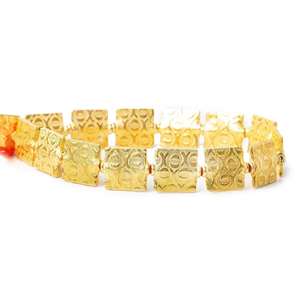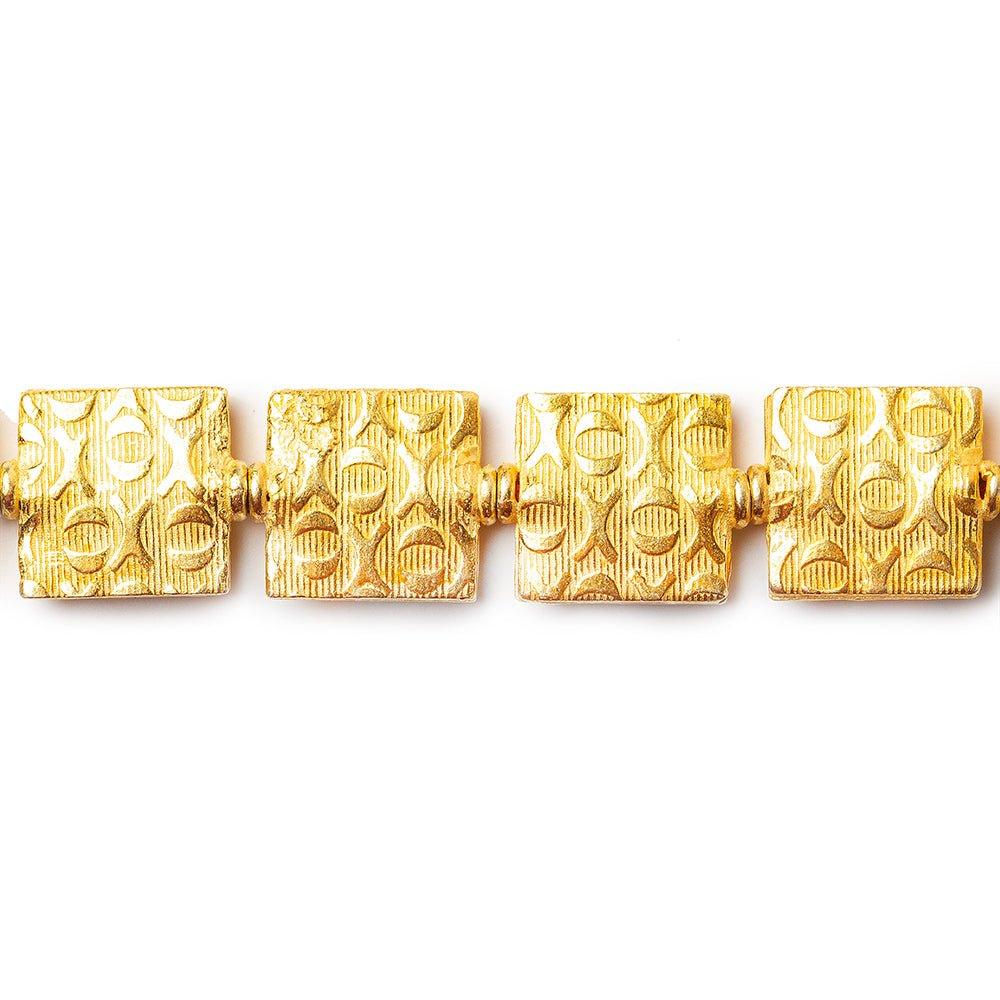 12mm 22kt Gold Plated Copper Hug and Kiss Embossed Square Beads, 8 inch