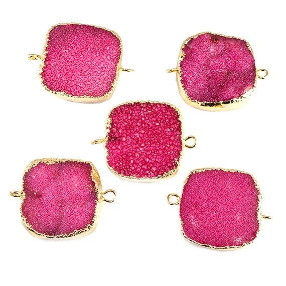 22mm Square Gold Leafed Hot Pink Drusy connector beads are hand crafted with precision measurements to showcase these color treated Drusy gemstones.