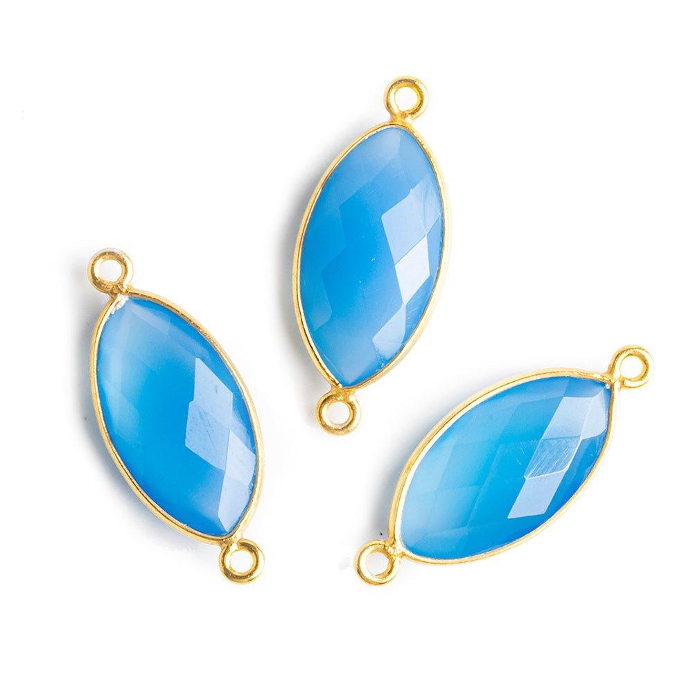 22x11mm Vermeil Bezel Santorini Blue Chalcedony Marquise sold as 1 focal Connector Charm.