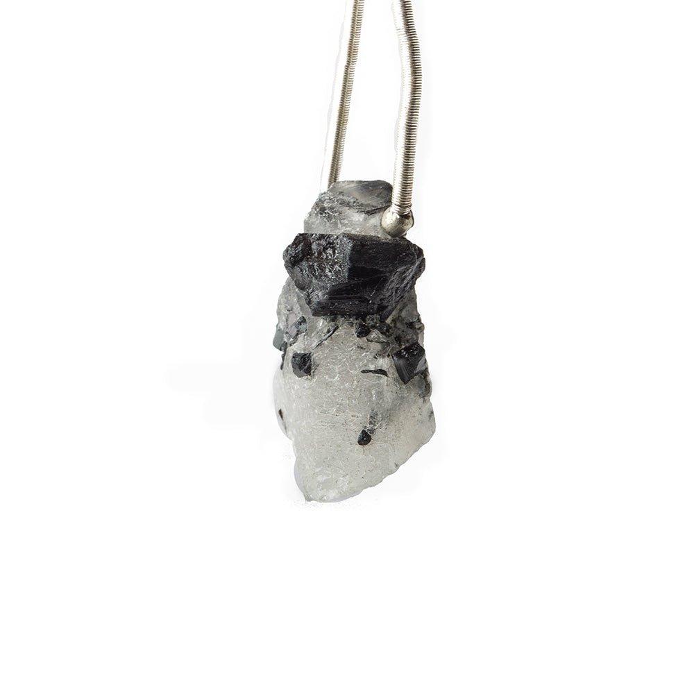 23x13mm Black Tourmalinated Quartz Natural Crystal Cluster Pendant 1 piece