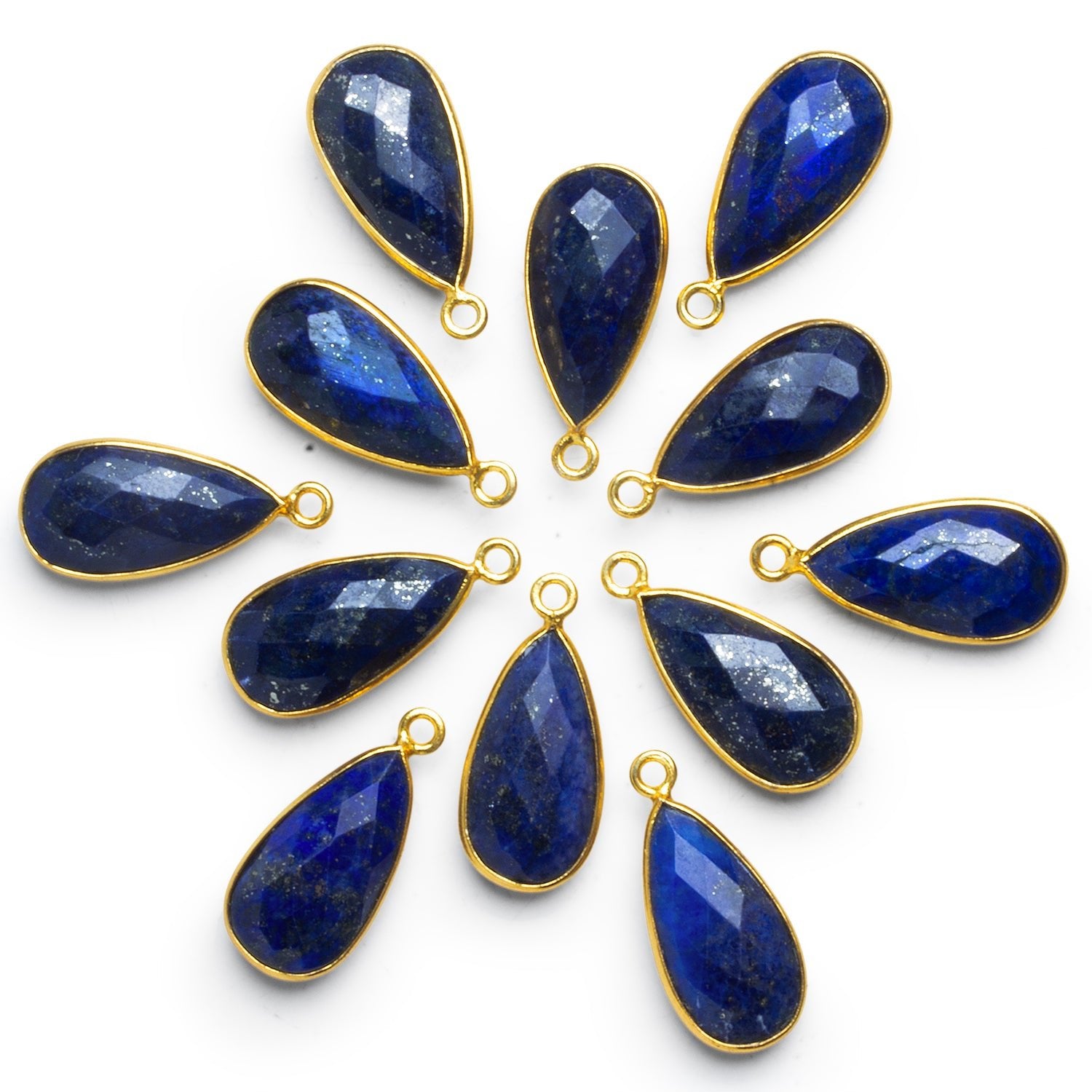 These Vermeil Bezeled Lapis Lazuli Pear Pendants offer a striking balance of elegance and earthy richness. Each pendant features a faceted pear-cut Lapis Lazuli stone measuring approximately 24x11mm, glowing with vibrant ultramarine tones and flecks of natural pyrite that give it a celestial shimmer.
