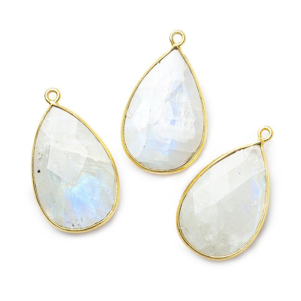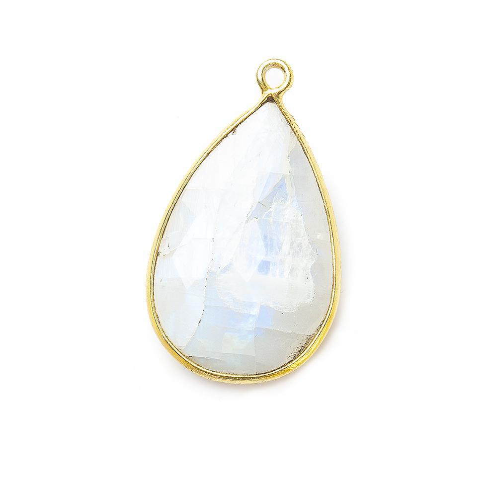 30x17mm Vermeil Bezel Rainbow Moonstone faceted pear Pendant sold as 1 piece.