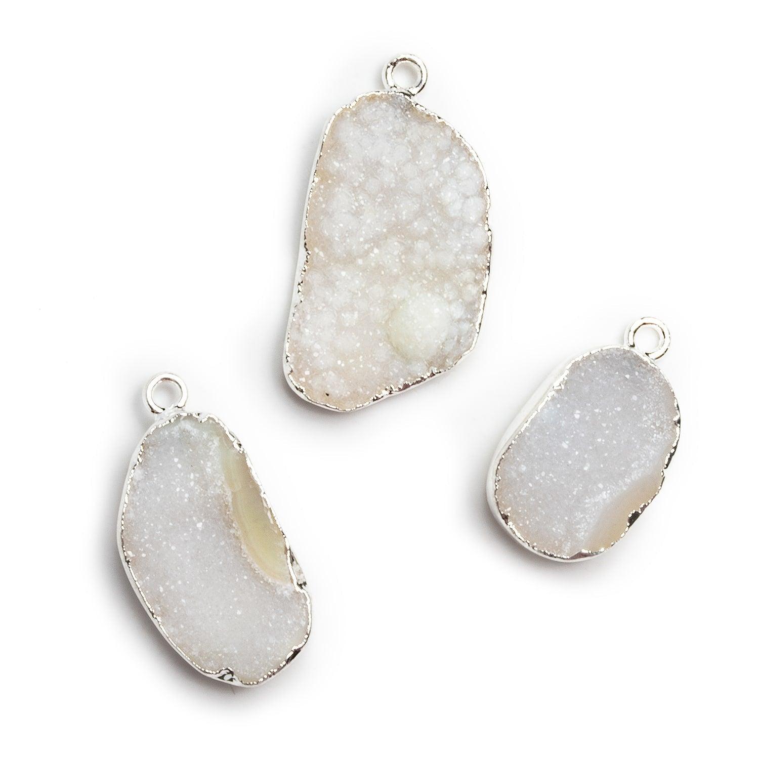 27x13mm Silver Leafed White Drusy Pendants - Lot of 3