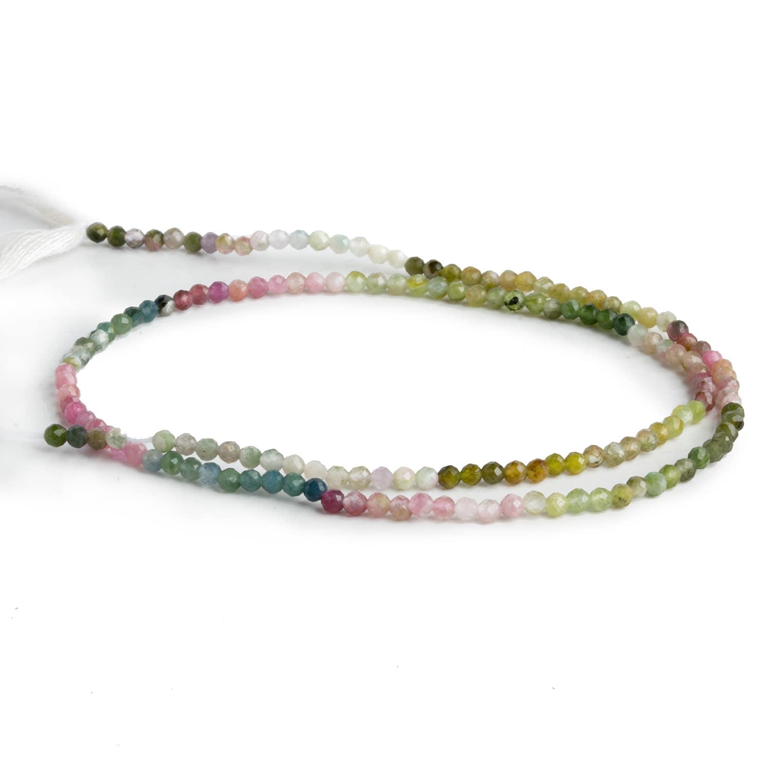 Beads measure about 2mm in diameter. These incredible Multi Tourmaline strands are composed of a curated combination of colors from the best Afghani Tourmaline. Lovers of fine gemstones with be thrilled with the precise faceting and gorgeous natural looks on these microfaceted rounds.