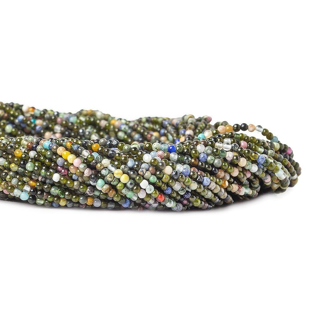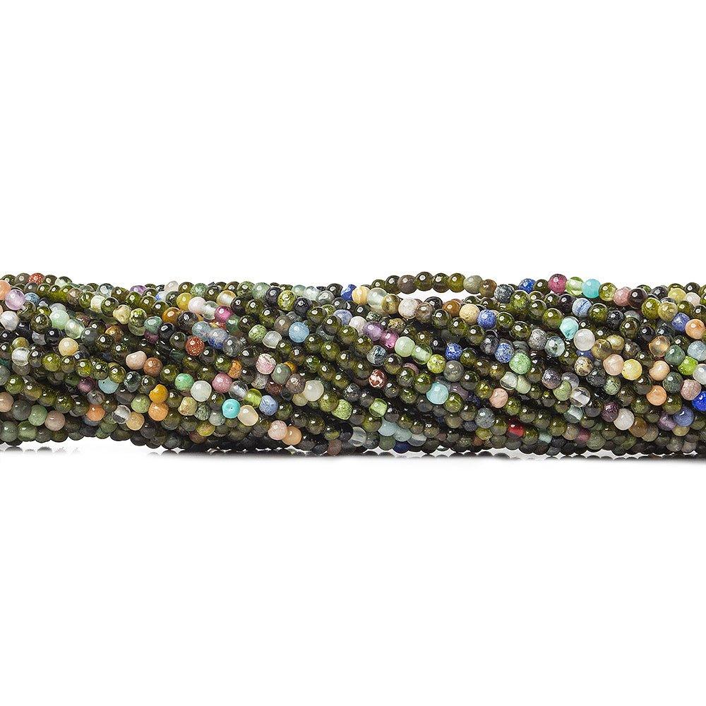 2mm approximate size for these Multi Gemstone plain round beads 16 inch 220 pieces per strand.