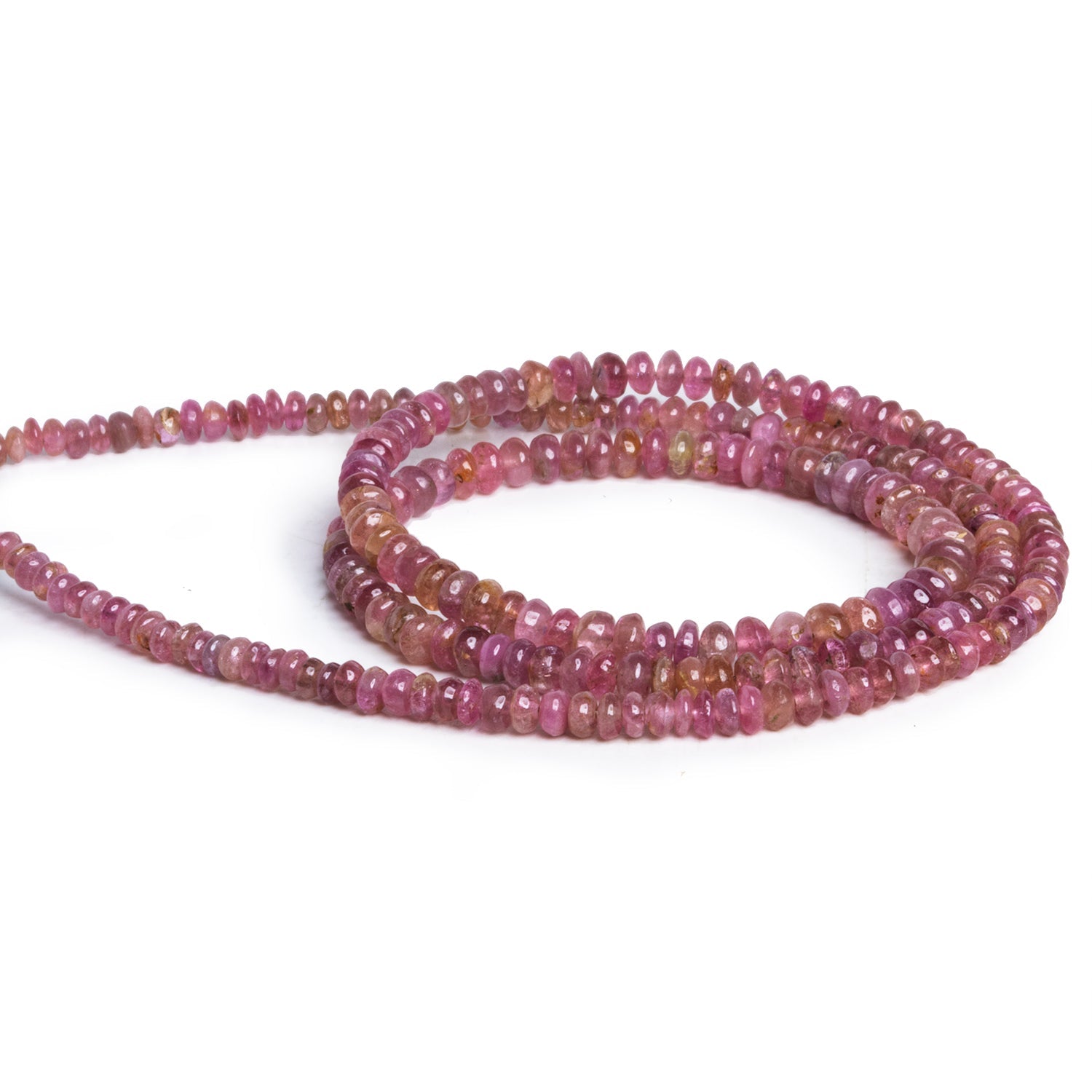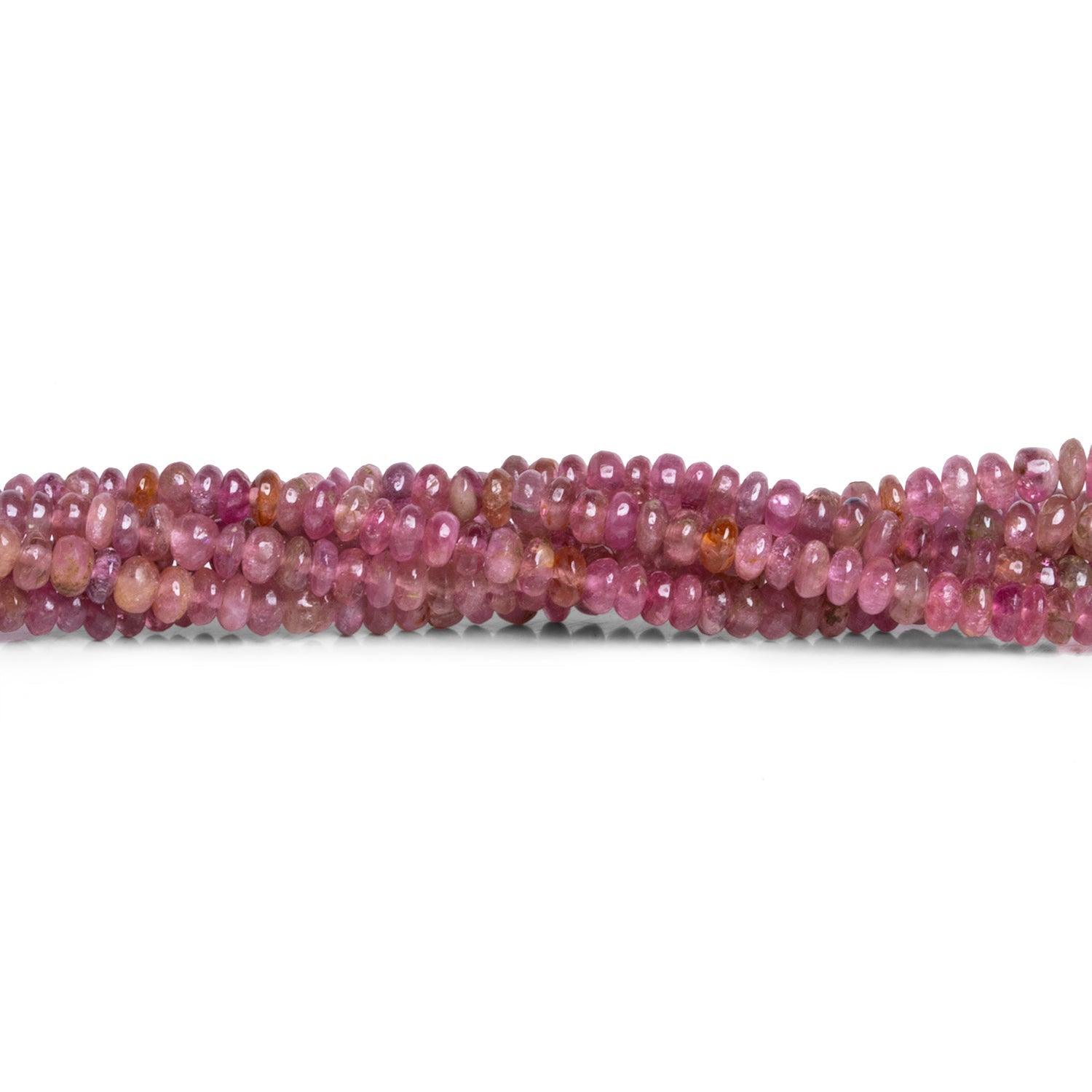 Beads range from about 3mm to 4mm. These beautifully colored genuine Pink Tourmaline beauties are crafted into a smooth polished rondelle shape that is both dainty and sophisticated. Expect strands graduated in size to maximize their versatility in a wide range of jewelry designs. Imbue your next designs with the storied mystique of Pink Tourmaline, ideal for use in elegant necklaces, earrings and much more.