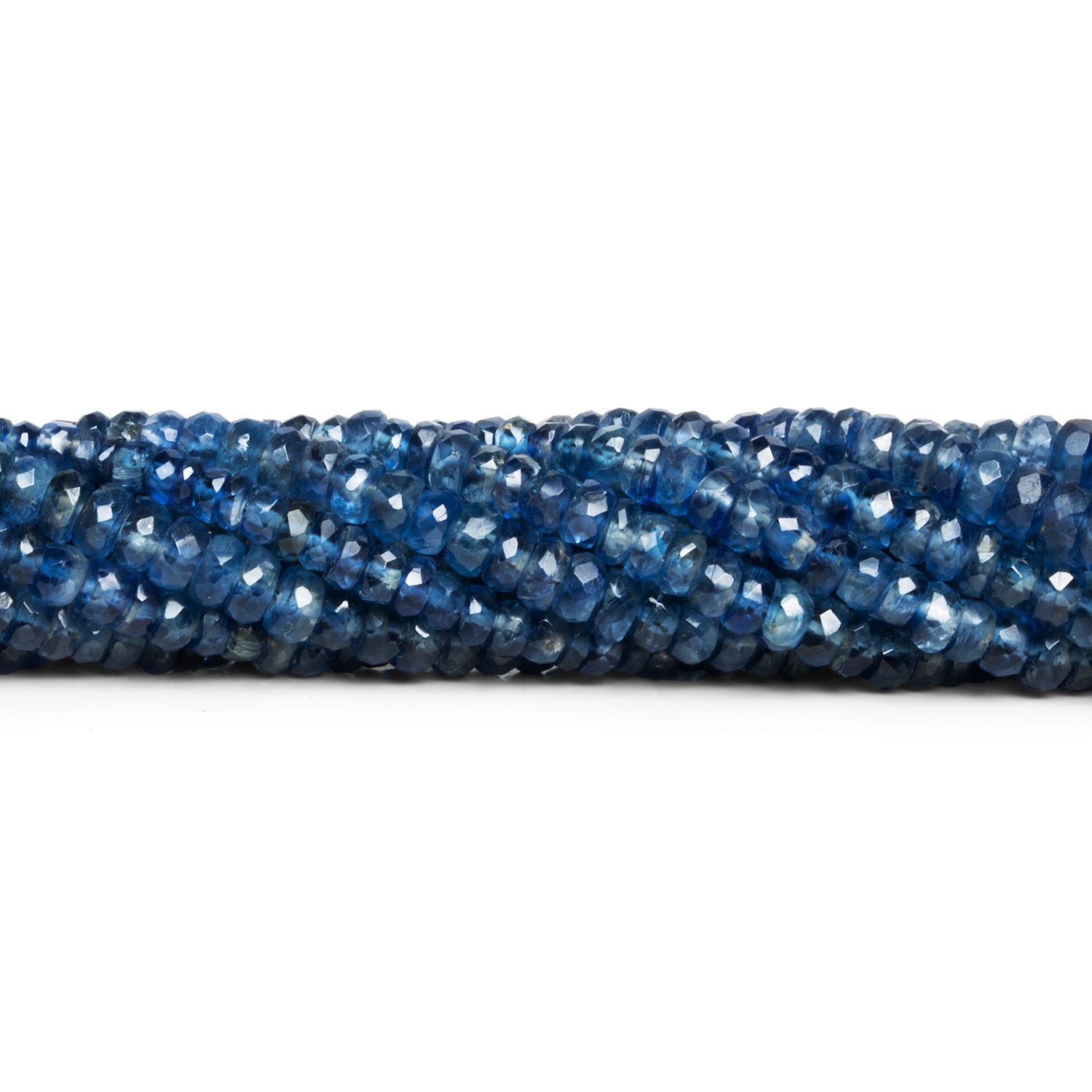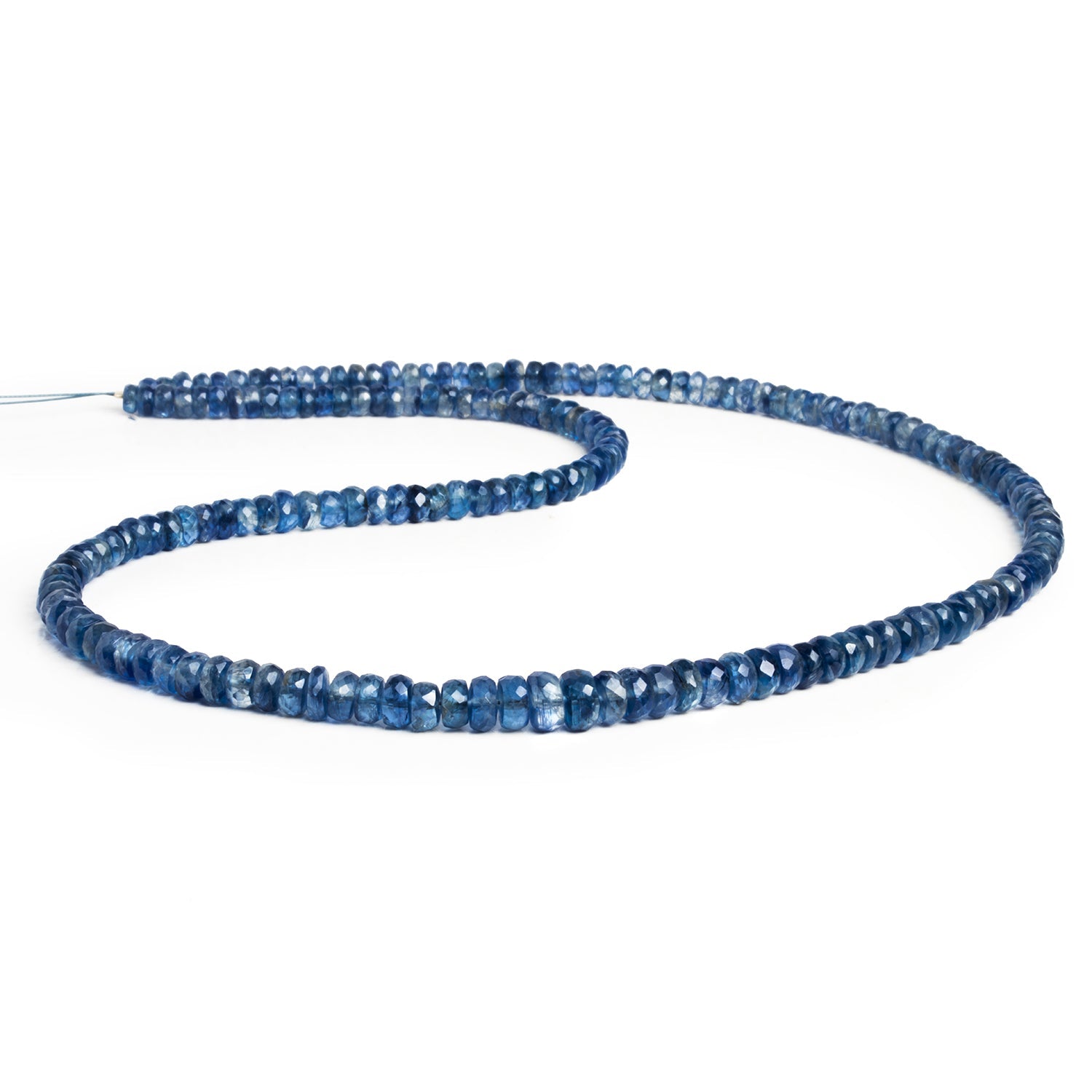 Beads range from about 3mm to 6.5mm in diameter. These scintillating natural Nepalese Kyanite offerings show off an exquisite color and masterful craftsmanship worthy of starring in your most ambitious designs. Our curated strands feature a graduated size providing pieces in the full size range and facilitating versatility with increased design possibilities. Fans of this top-tier gemstone can luxuriate in their unmatched richness of tone and sparkling faceted shape, ideal for use in necklaces, earrings, bracelets and more.