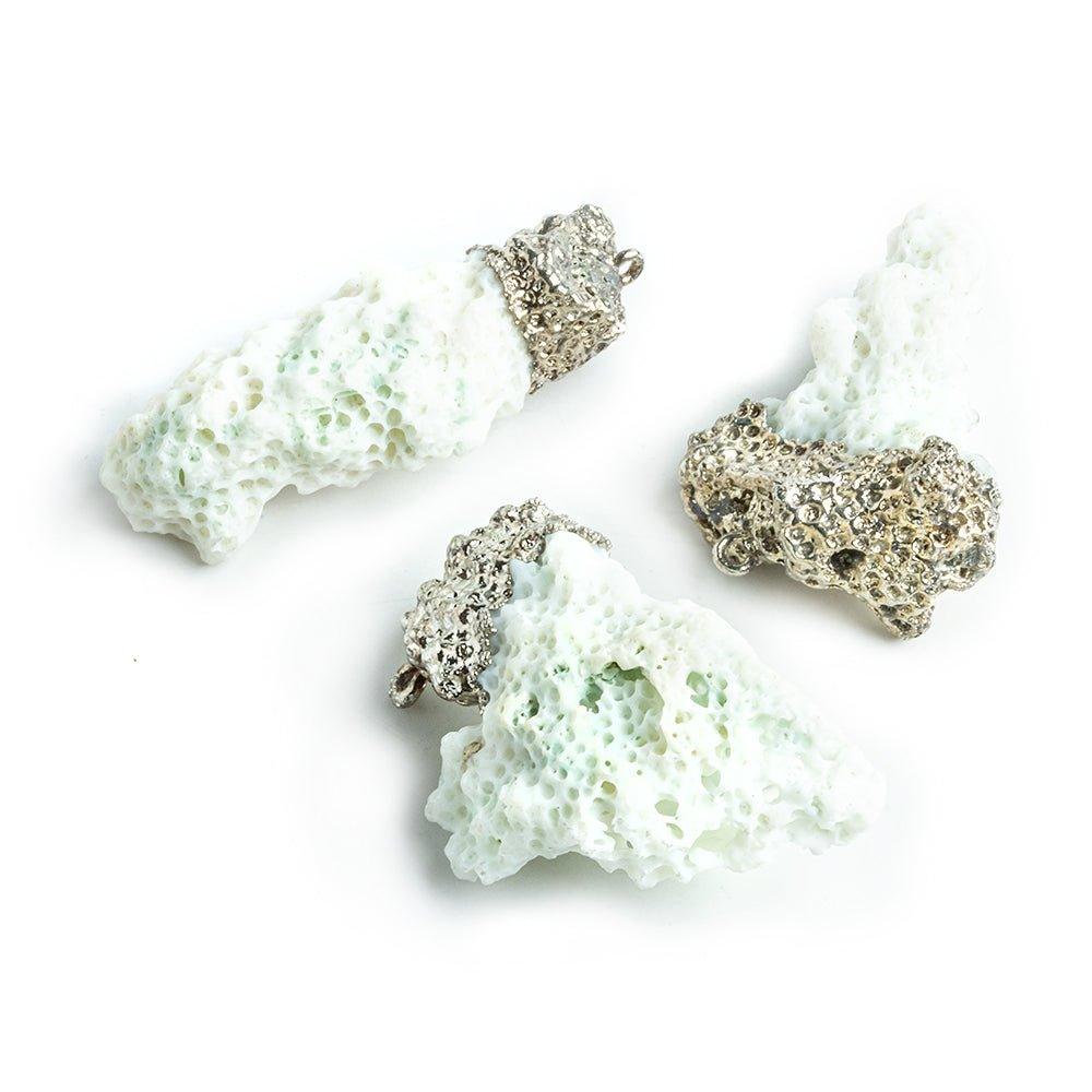 30x12mm Silver Leafed White Coral Pendants - Lot of 3