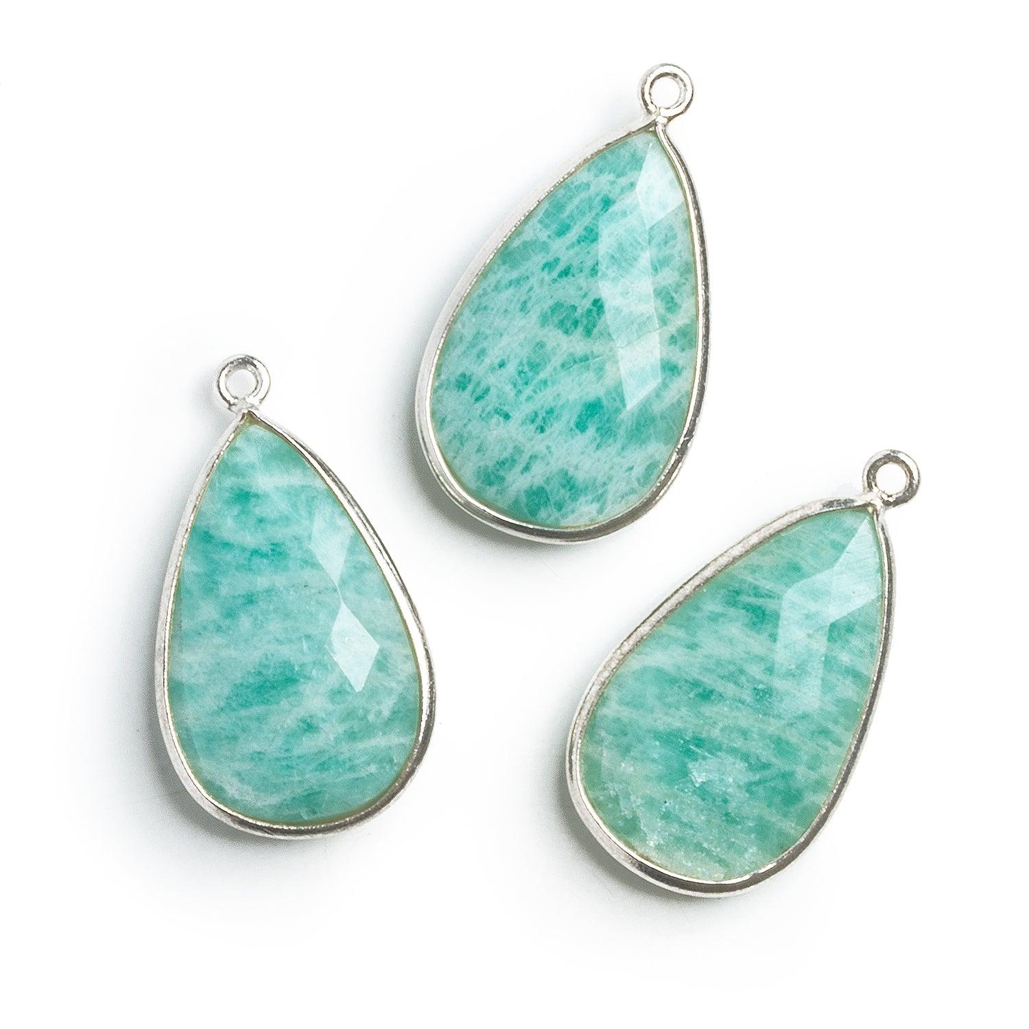 30x17mm Silver Bezeled Amazonite Pear Pendant 1 bead