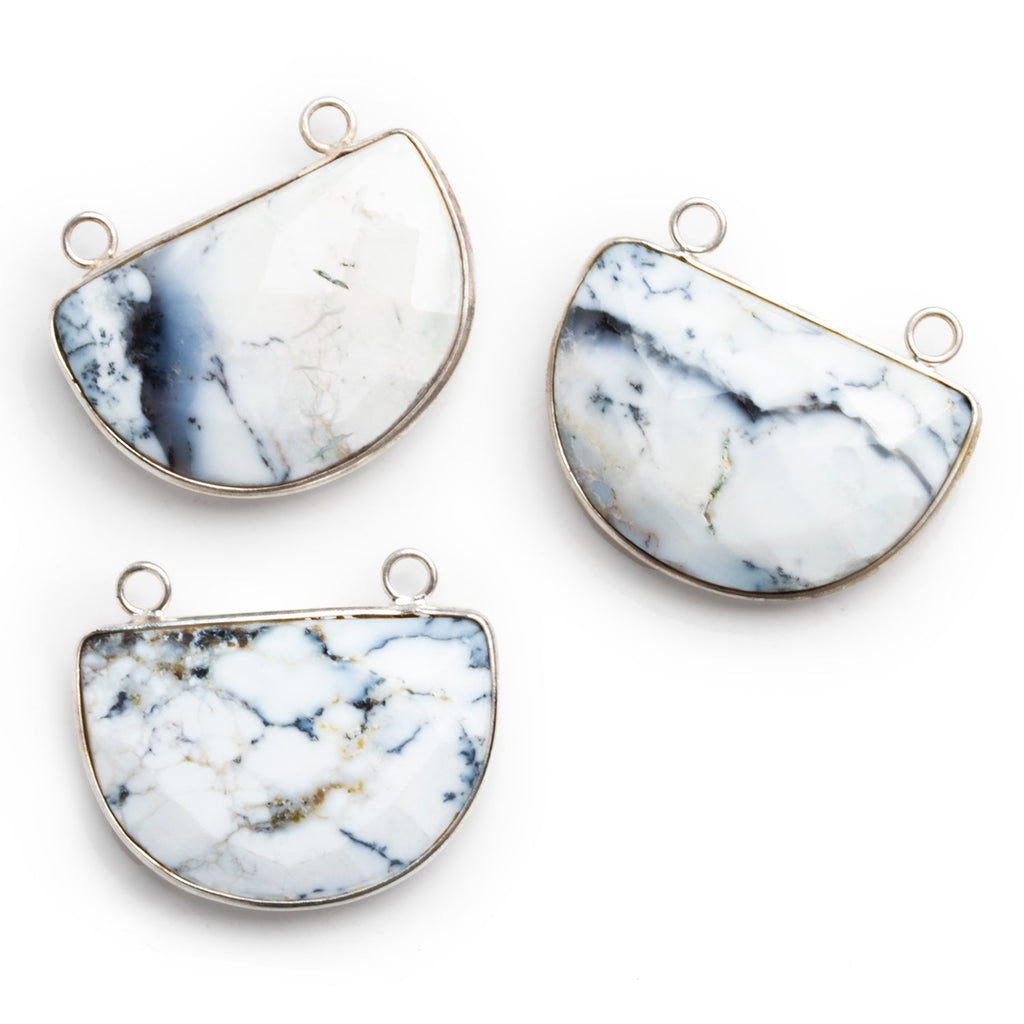 Beads measure about 31x26mm. Our sizable Half Moon connectors are the perfect showcase for the alluring dendritic patterns that make this gemstone a favorite amongst beaders. With an elegant and sophisticated style, these sizable pieces make a wonderful pairing with our signature silver bezeling. Make sure to have some of these lovelies connectors at hand when you sit down to your next slate of Jewelry Designs, perfect for the most ambitious and luxurious projects.