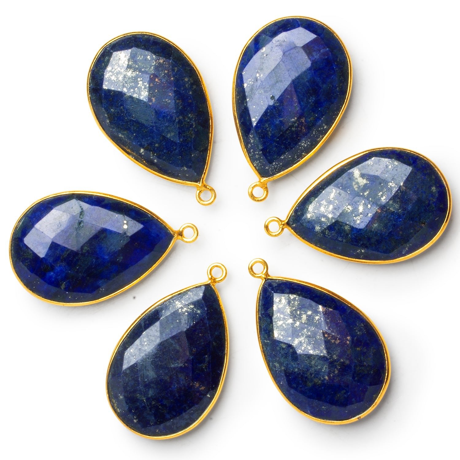 These Vermeil Bezeled Lapis Lazuli Pear Pendants offer a timeless silhouette with rich natural color. Each pendant showcases a beautifully faceted pear-shaped cut of Lapis Lazuli, glowing with its signature deep blue hue and scattered golden pyrite inclusions. The faceting enhances the stone’s luster, while the bezel of radiant gold vermeil creates a luxurious and polished finish.