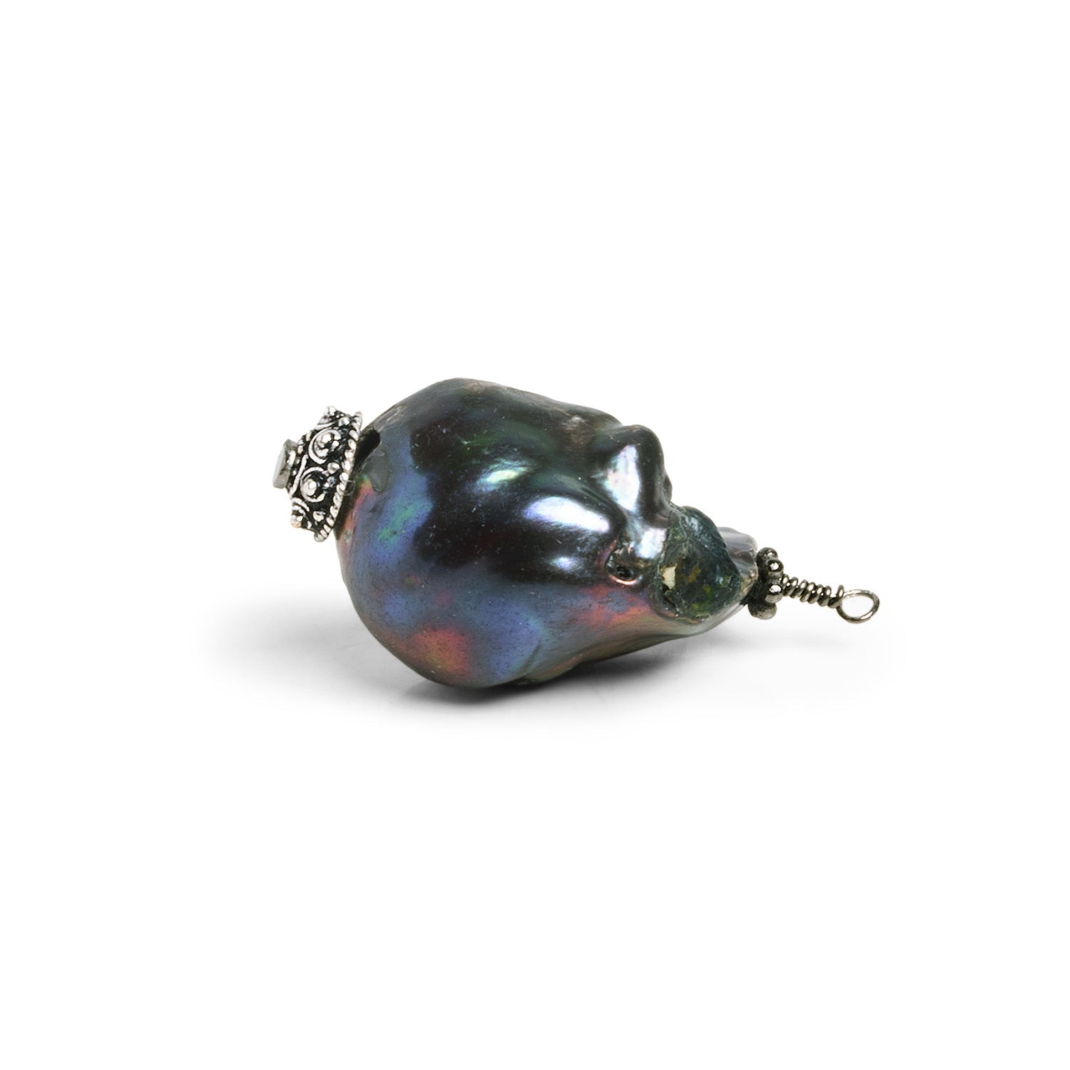 This fantastic Ultra Baroque Pearl focal measures 37x20mm and has been meticulously wire-wrapped with the addition of black gold spacers and an ornate beadcap on our black gold plated wire. Seekers of a fine pearl focal bead stemming from a high-quality Ultra Baroque should jump on these signature offerings perfect for bringing together a necklace.
