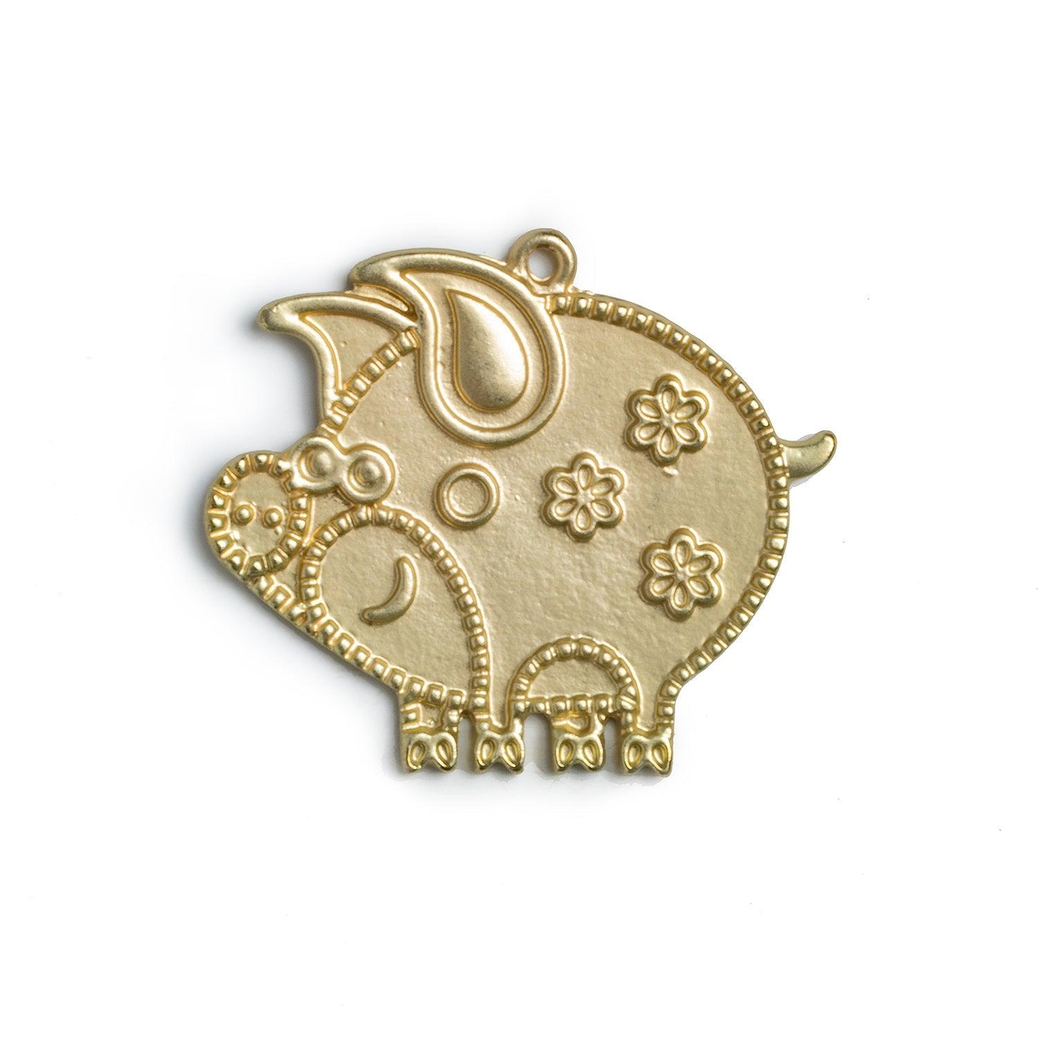 37x43mm Brass-tone Pig Pendant with Floral Relief Designs 1 piece