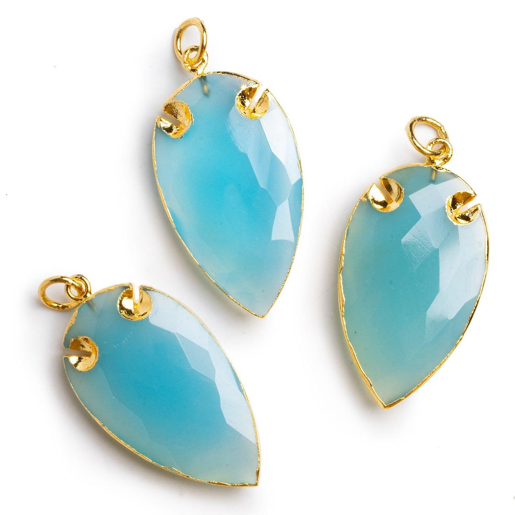 39x20mm Gold Leafed Blue Chalcedony Arrowhead Pendant 1 Bead