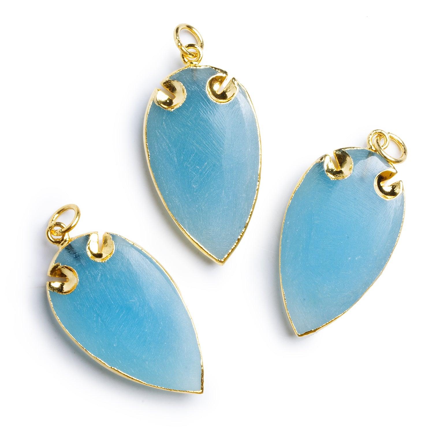 39x20mm Gold Leafed Matte Blue Chalcedony Arrowhead Pendant 1 Bead