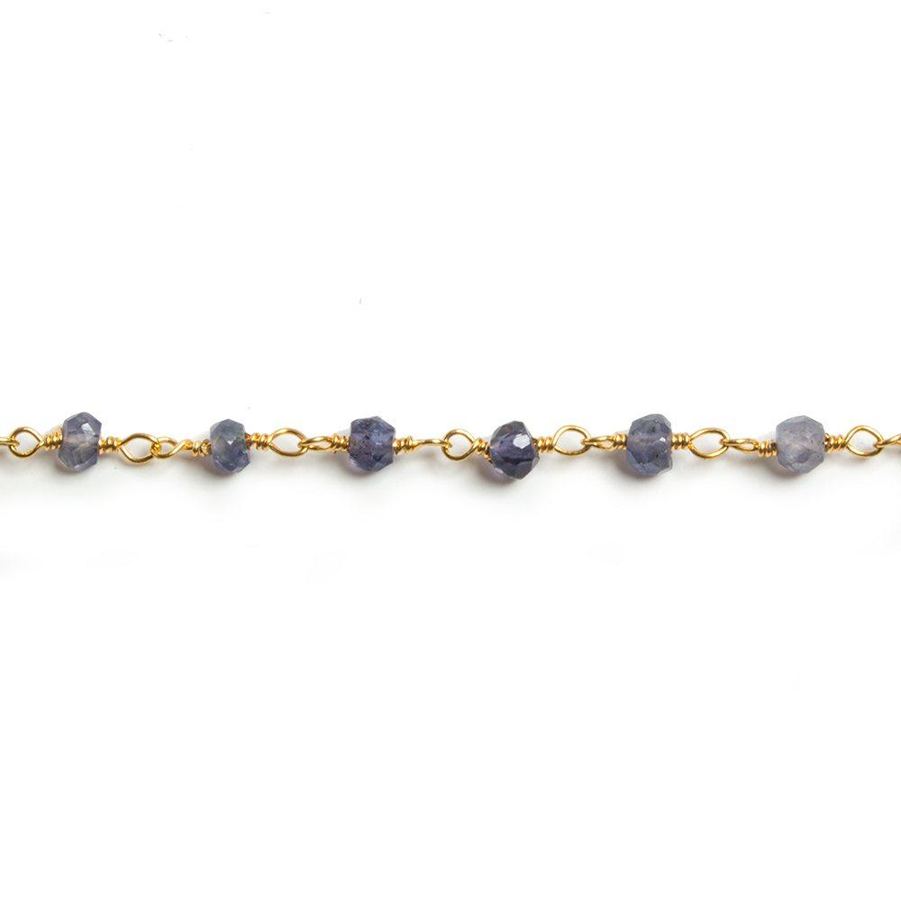 3mm Iolite faceted rondelle Gold Rosary Chain contains 34 piece per 12 inches on the hand crafted wire wrapped gemstone rosary chain sold by the foot. 3 quantity = 3 continual feet.