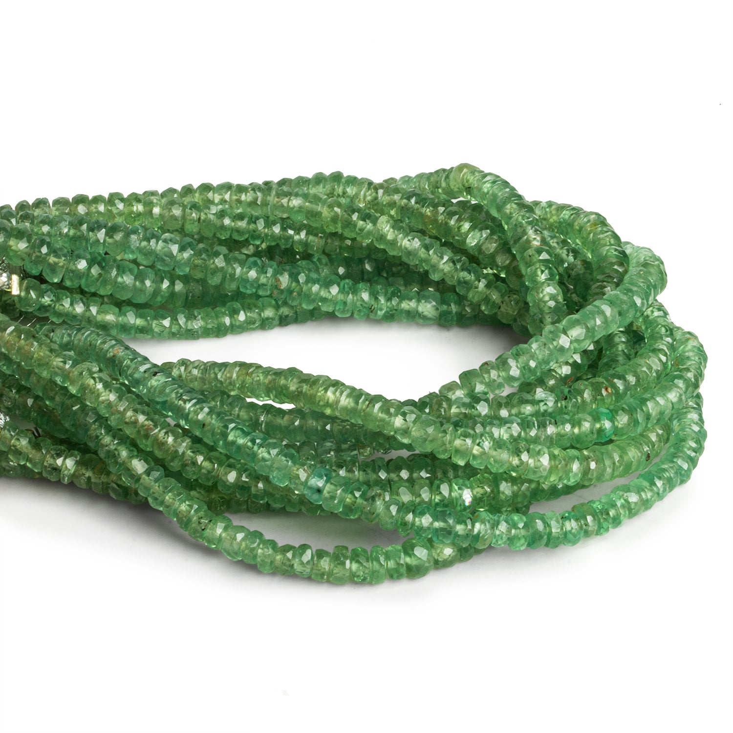Measuring approximately 4–4.5mm, these delicately scaled rondelles are perfect for layering into multi-strand necklaces, gemstone spacers, or intricate bead-woven designs. Their gentle green brilliance pairs beautifully with gold, champagne diamonds, or warm earth-tone stones, adding a serene, natural elegance to artisan jewelry creations.