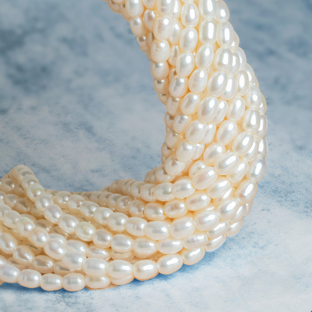 approximate 4.5mm to 5.5mm in diameter on the 15 inch strand of 105 pieces