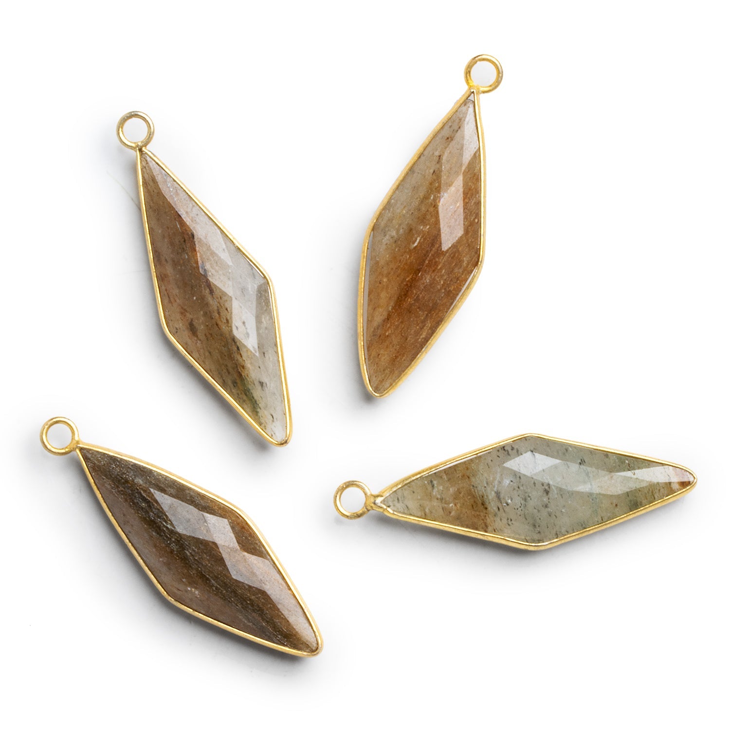 40x13mm Vermeil Bezeled Golden Moss Quartz Kite Pendant 1 Bead