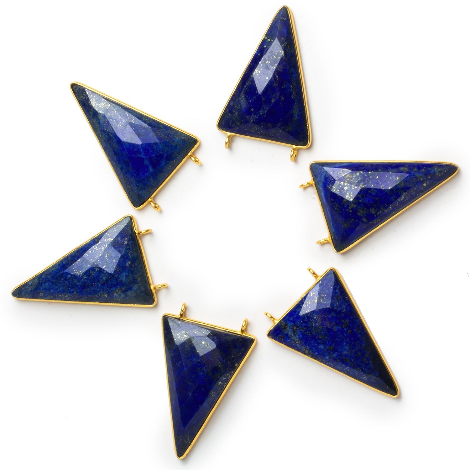 These Vermeil Bezeled Lapis Lazuli Triangle Connectors deliver bold, modern geometry paired with the timeless allure of natural stone. Each striking triangular focal features faceted Lapis Lazuli with its signature royal blue tones and shimmering flecks of pyrite, securely framed in luminous gold vermeil.
