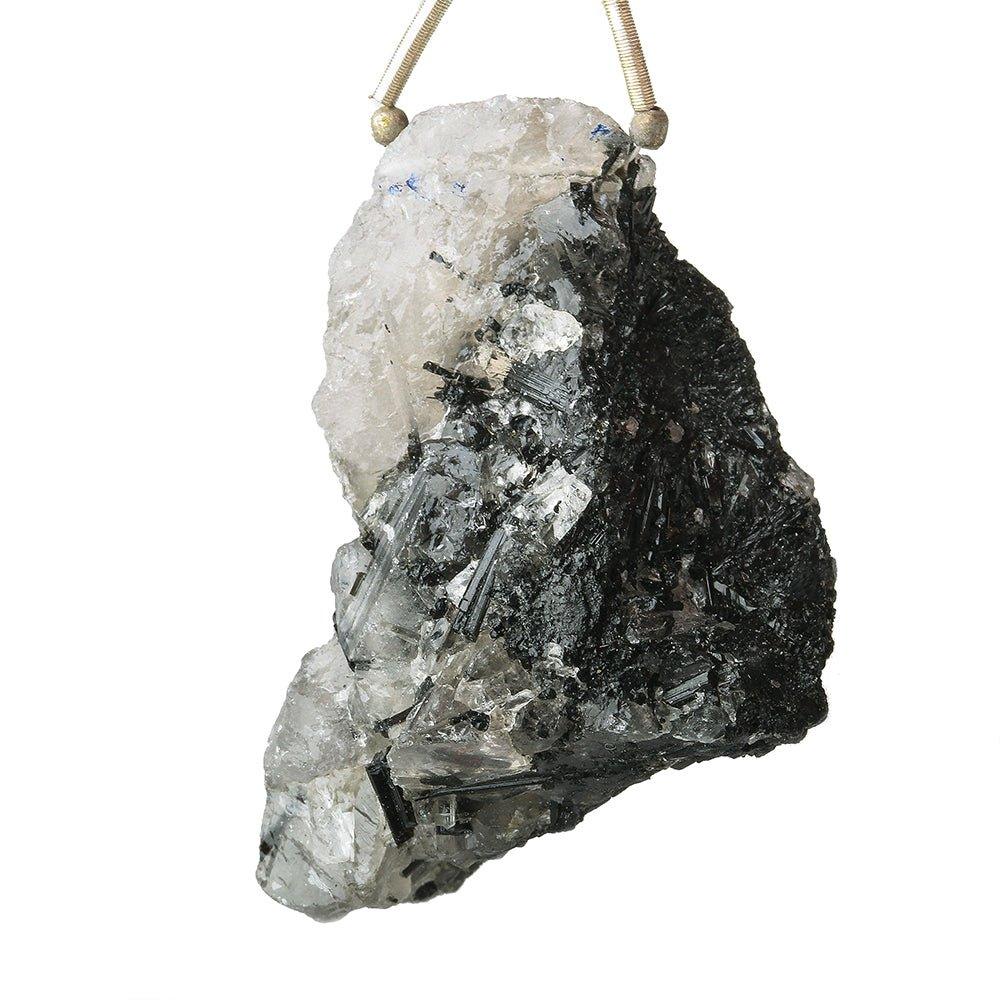45x32mm Black Tourmalinated Quartz Natural Crystal Cluster Pendant 1 piece