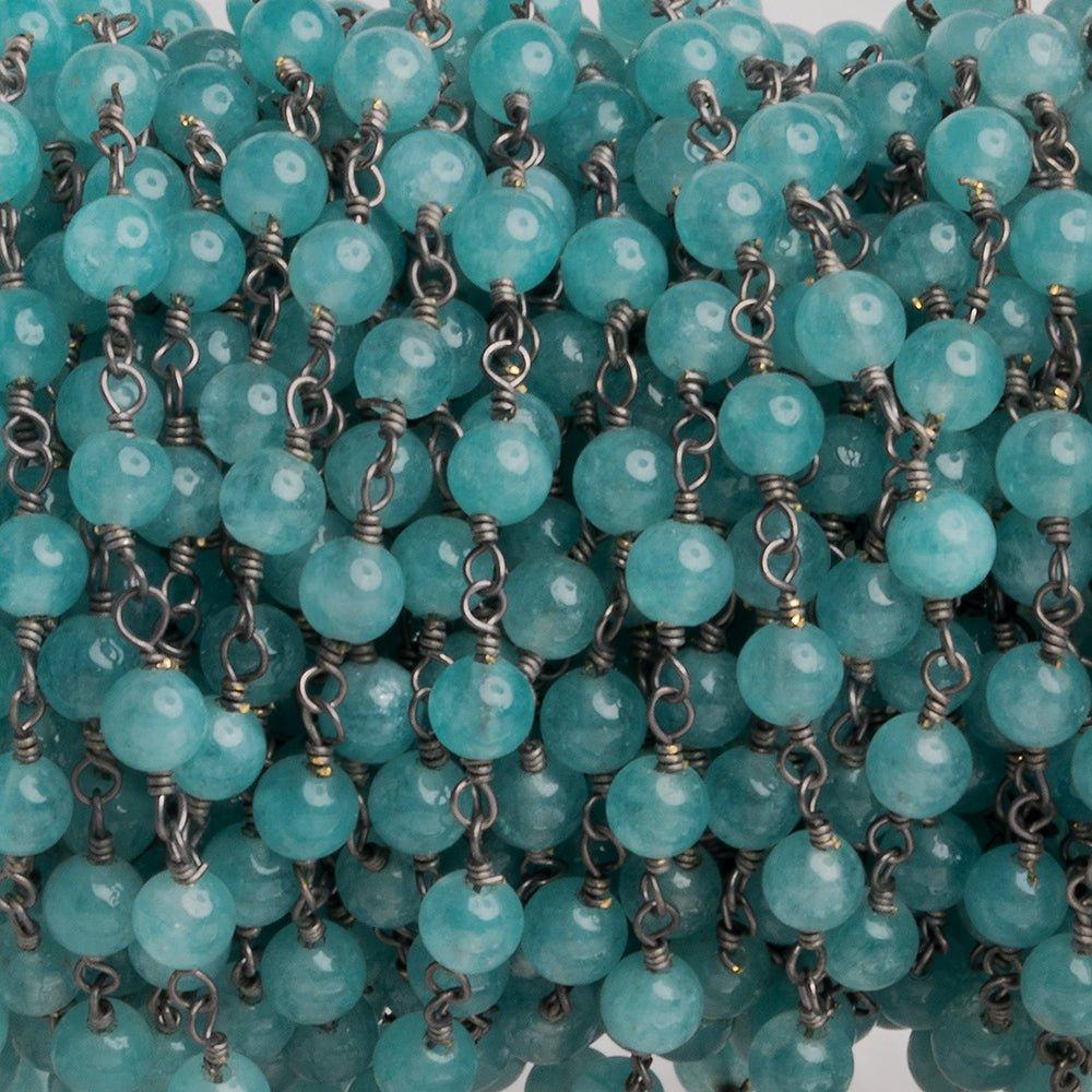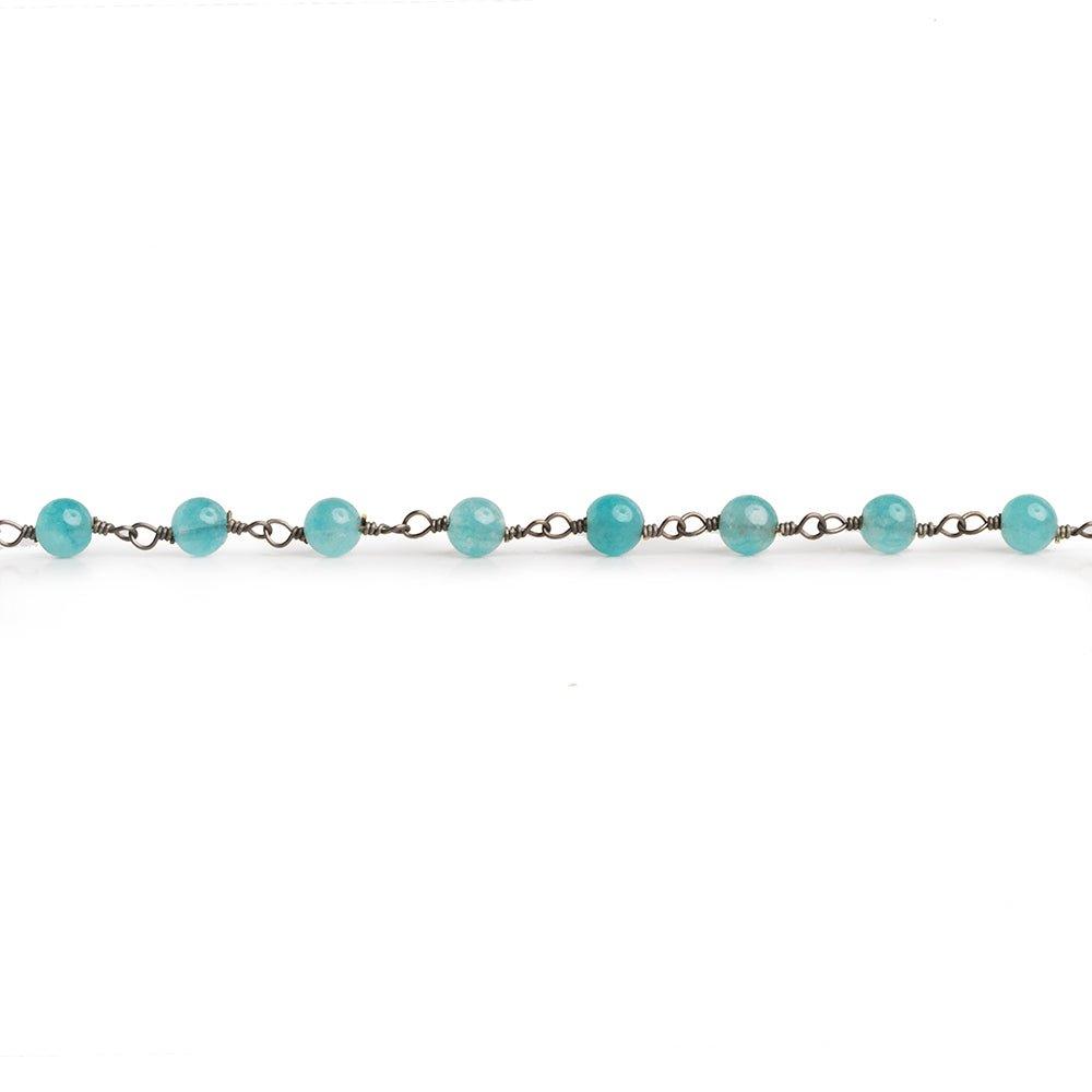 Beads measure about 4mm in diameter and the hand-wrapped chain is sold by the foot with roughly 30 beads per foot. These rounds are a beautiful translucent blue. Custom created by hand from our own supply of quality beads to enable matching of strand to chain!