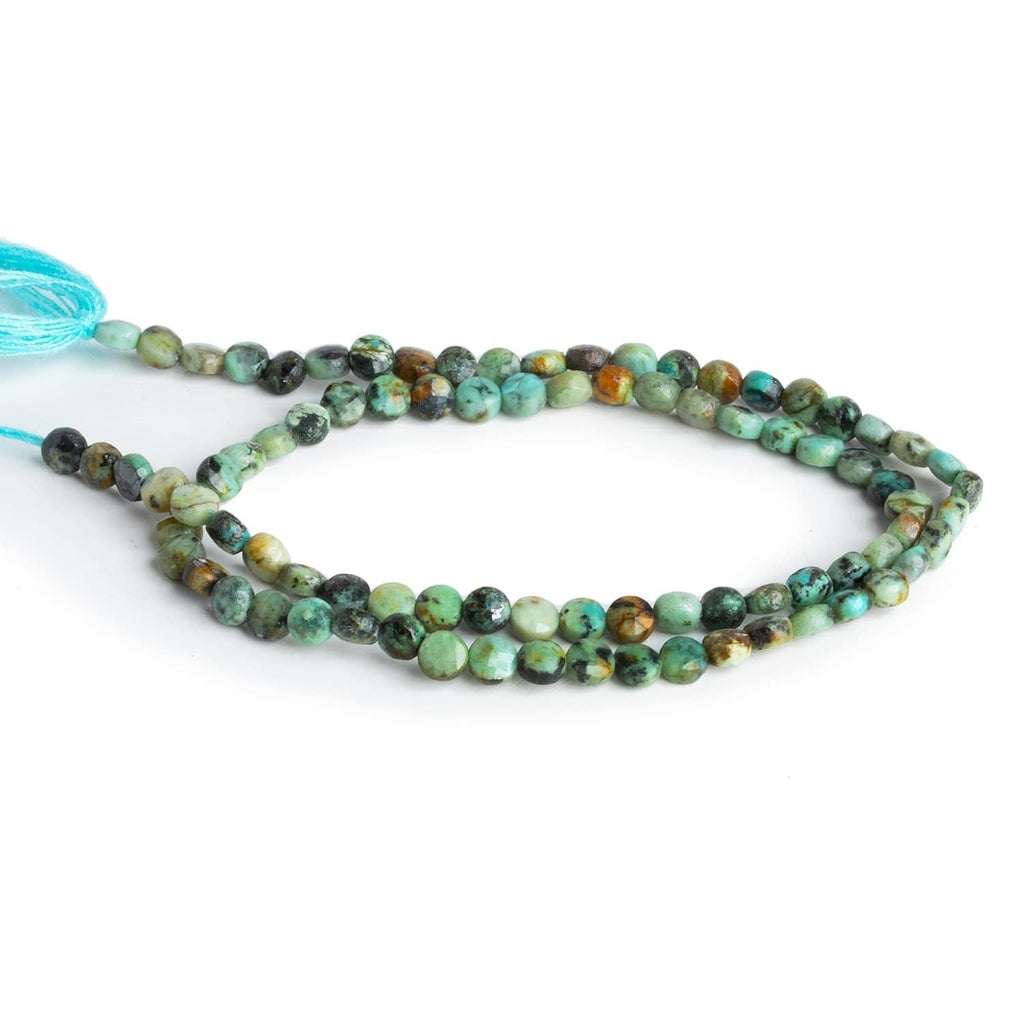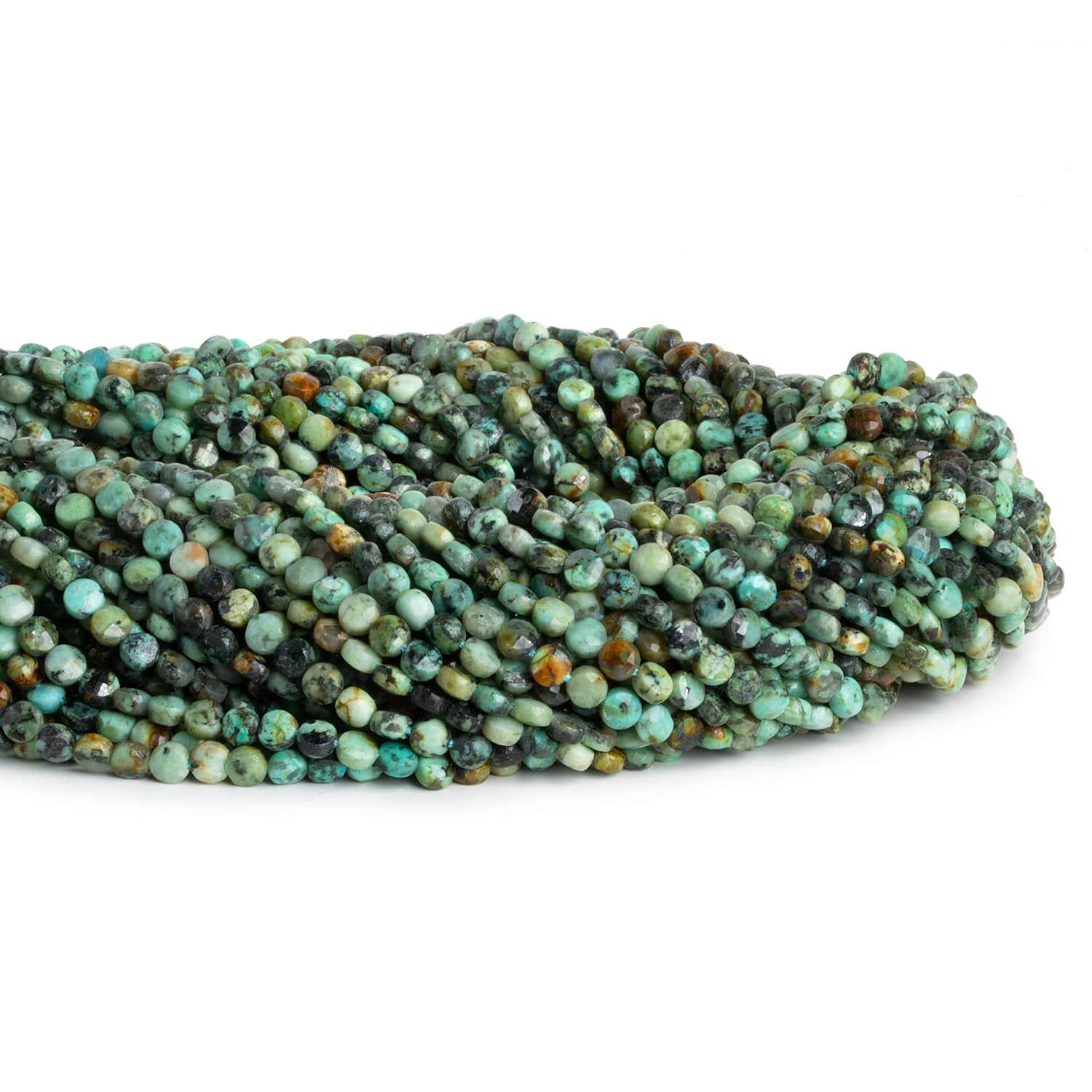 These 4.5mm African turquoise micro-faceted checkerboard faceted coin beads are a testament to nature’s artistry, offering a rugged yet refined aesthetic. Their calibrated shape and precision faceted surfaces make them a standout element in any jewelry design, reflecting light in subtle glimmers that enhance their unique color variations.