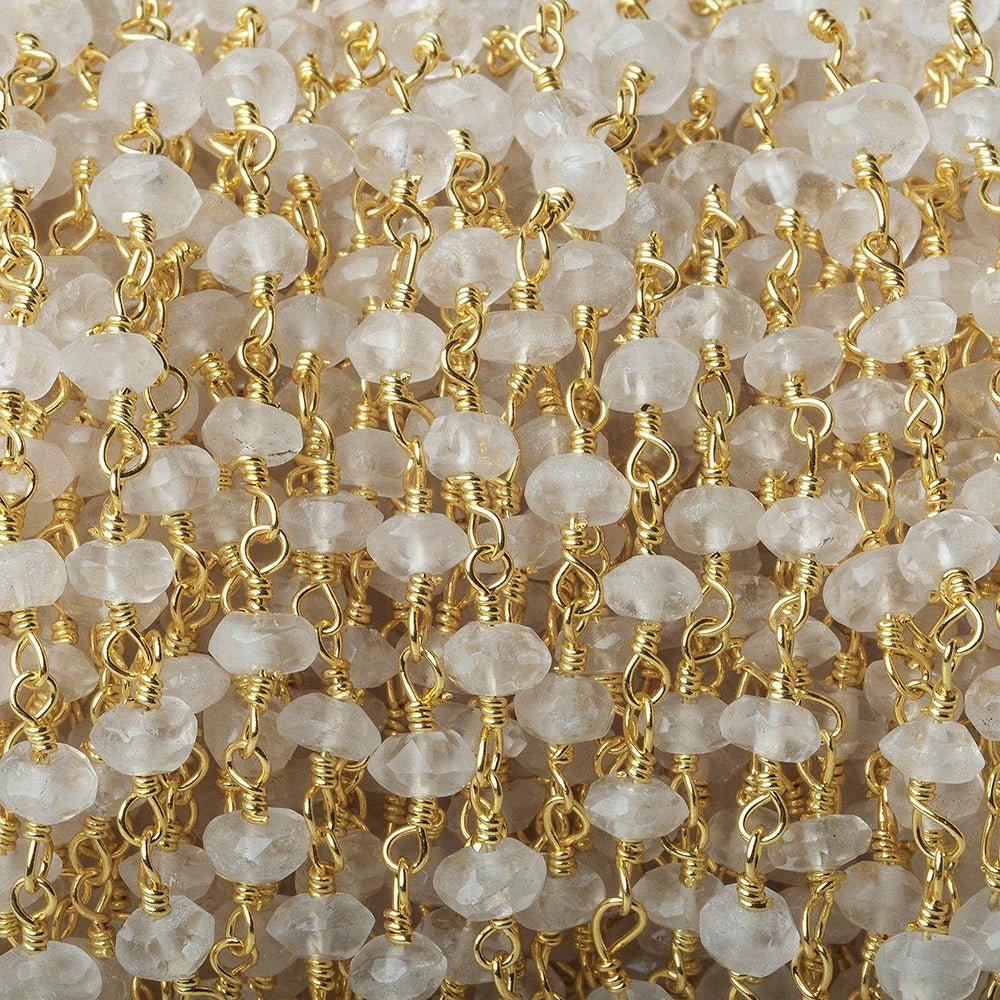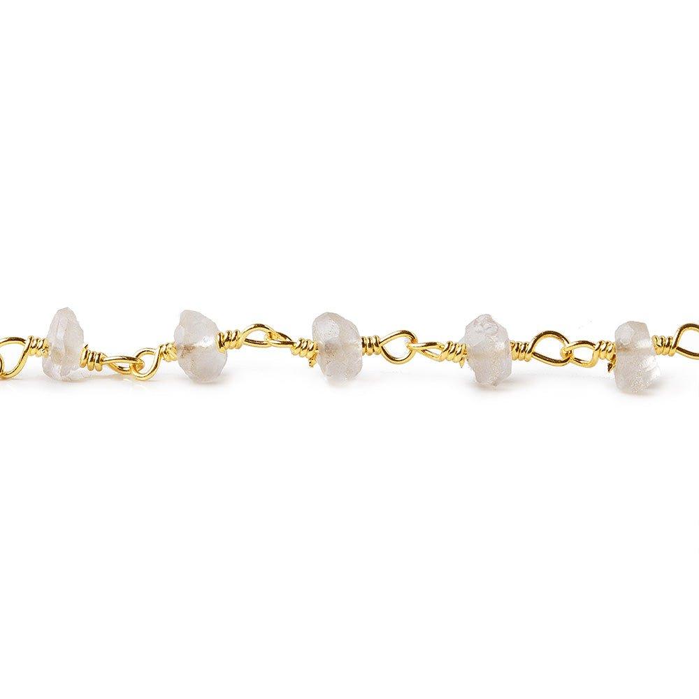 4mm Cream Moonstone native faceted rondelle Gold Chain by the foot