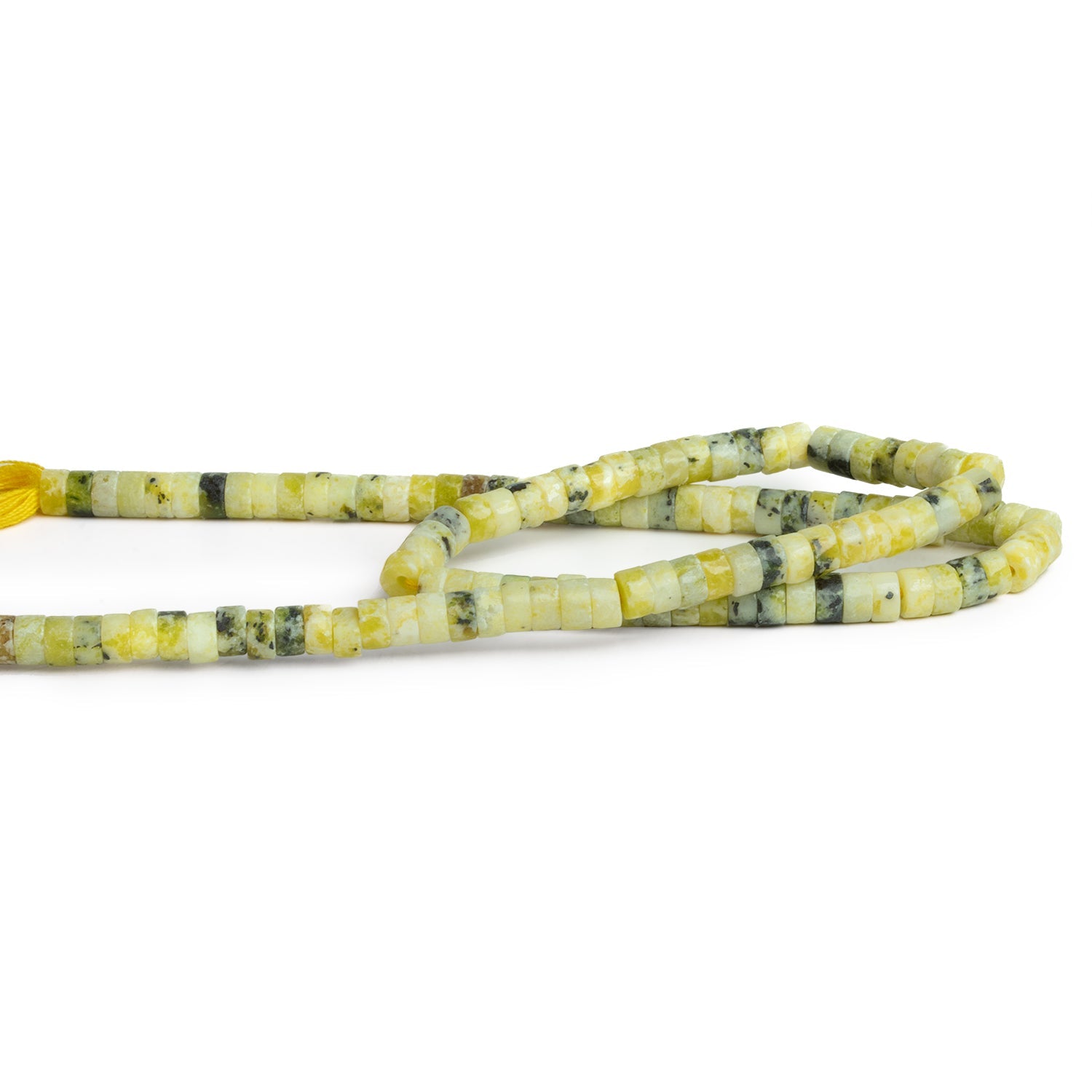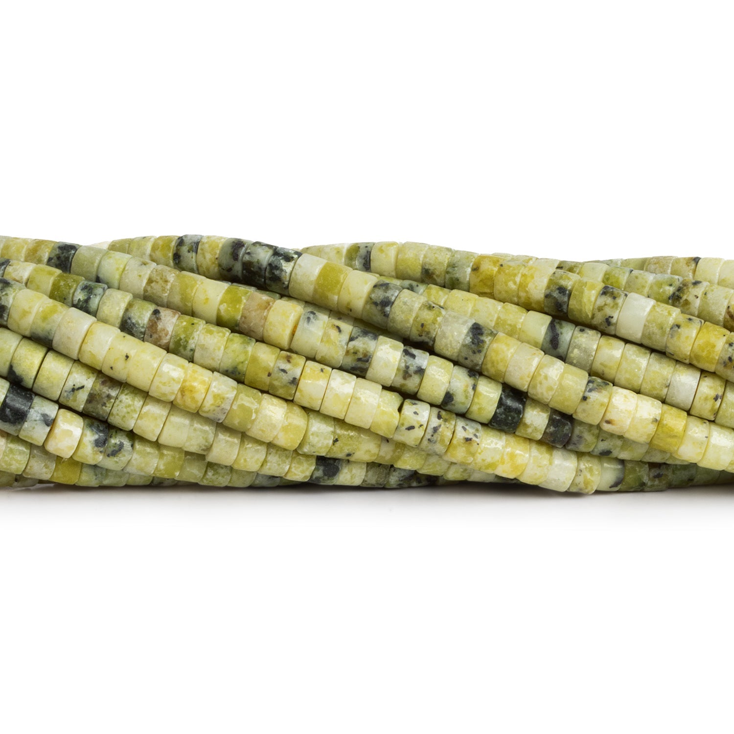 These Serpentine Heishi beads feature a captivating range of yellow to greenish-yellow hues, accented with delicate grey speckled patterns that add a unique, earthy texture to each bead. Known for its grounding and protective properties, Serpentine brings a sense of balance and rejuvenation to your designs. The interplay of yellow and grey tones creates an intriguing contrast, making these beads stand out in any jewelry project.