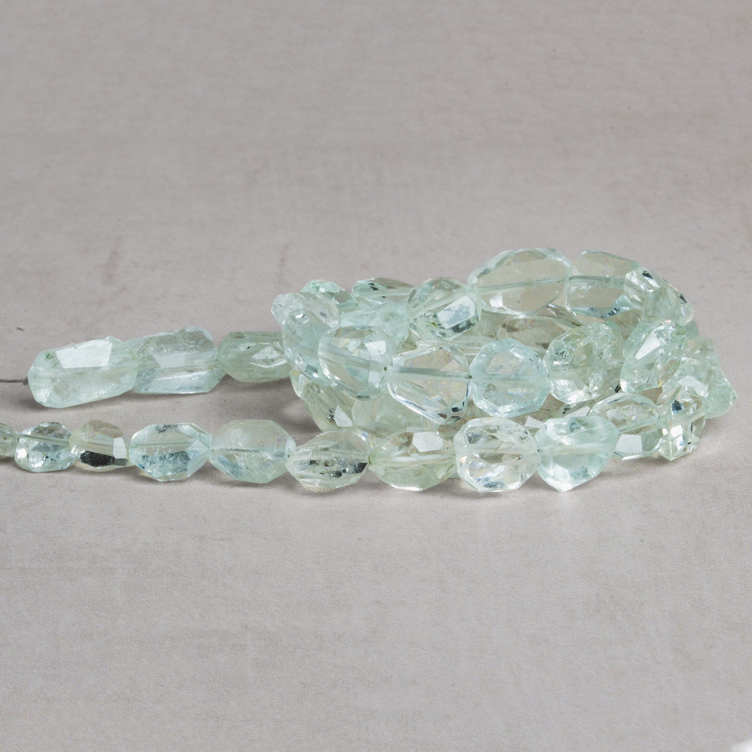 Beads measure from about 5mm to 9mm in diameter. Expect a light, greenish-blue color palette on clear, faceted nuggets of a dainty and angular character. These specially curated little gems impart an icy mystique that is destined to shine in all manner of Jewelry Designs. Let your imagination run wild with these striking nugget beads, perfect for use in necklaces, earrings and much more.
