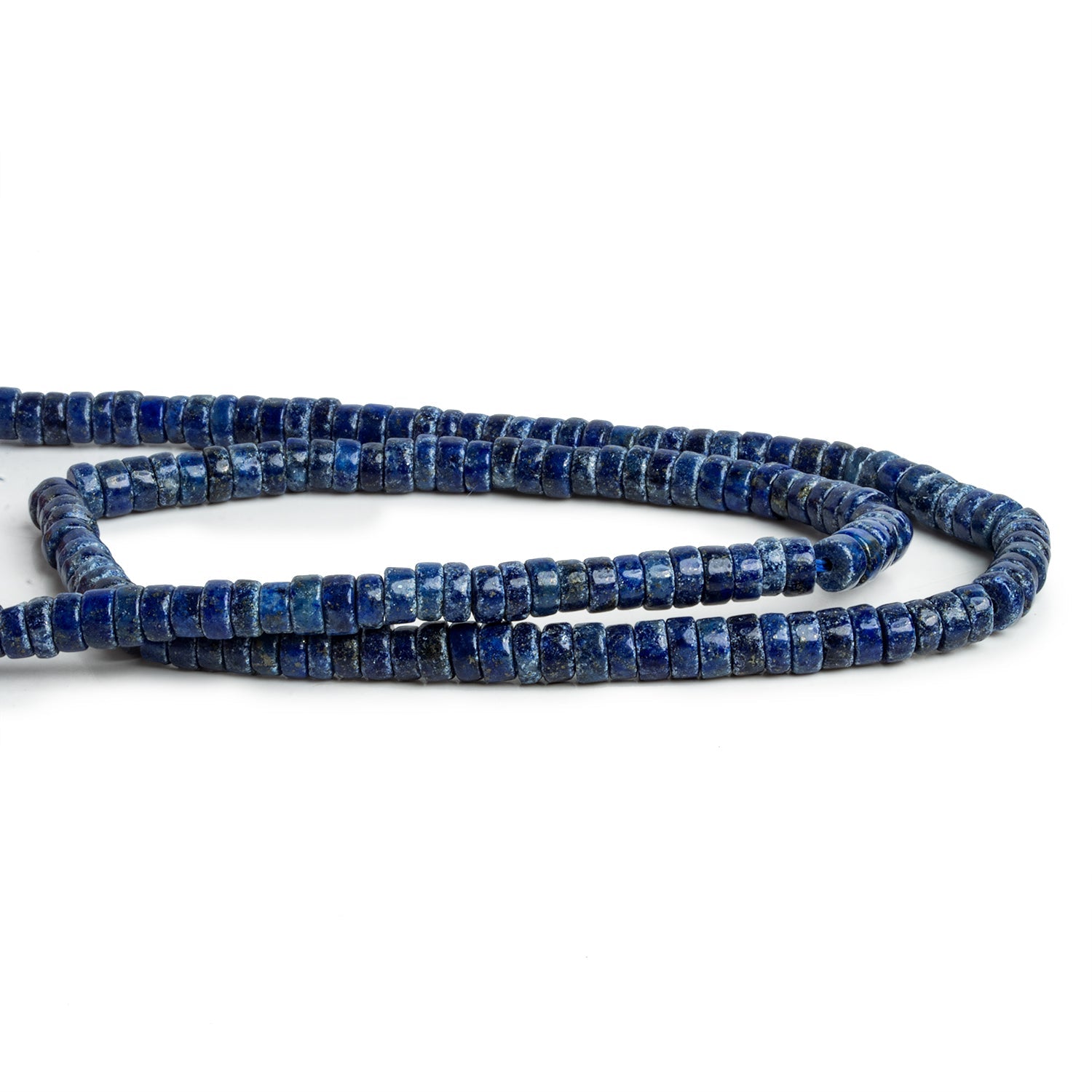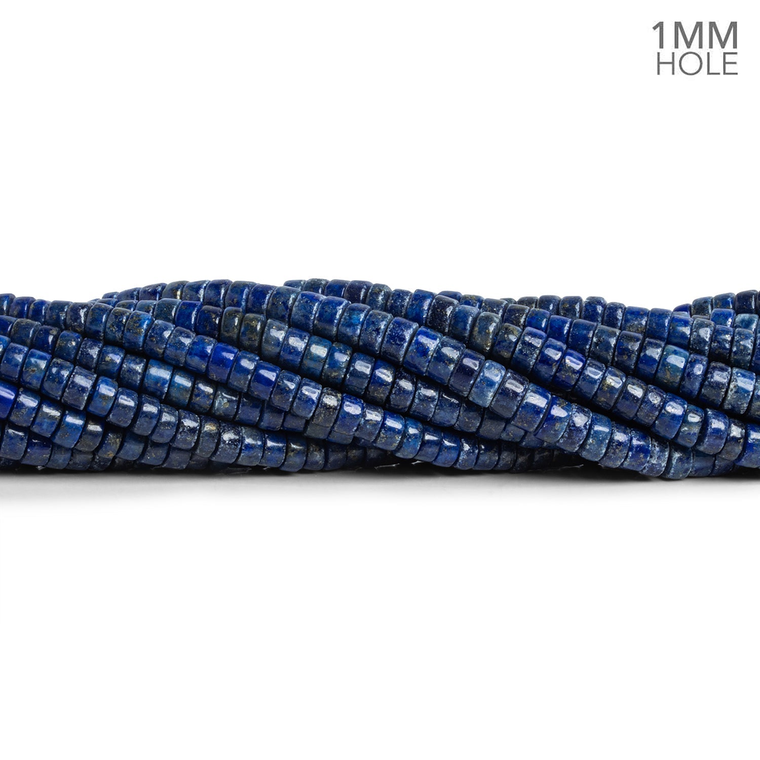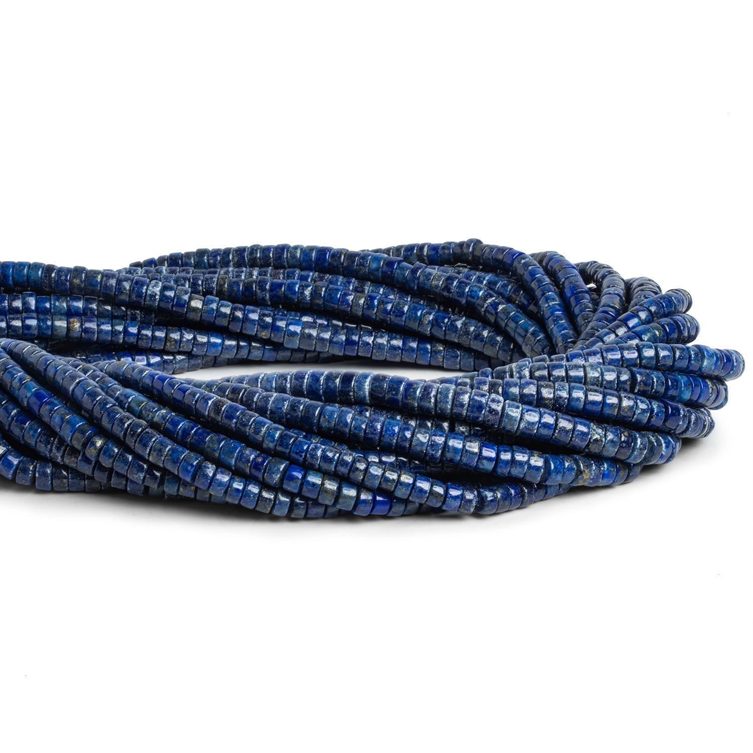 Beads average 5mm in diameter. These short tube pieces resemble heishis in shape and show off a rich, dark Lapis Lazuli coloration. Fans of this gemstone will appreciate these masterfully crafted, sleek bodies complete with the subtle sparkle of pyrite inclusions.