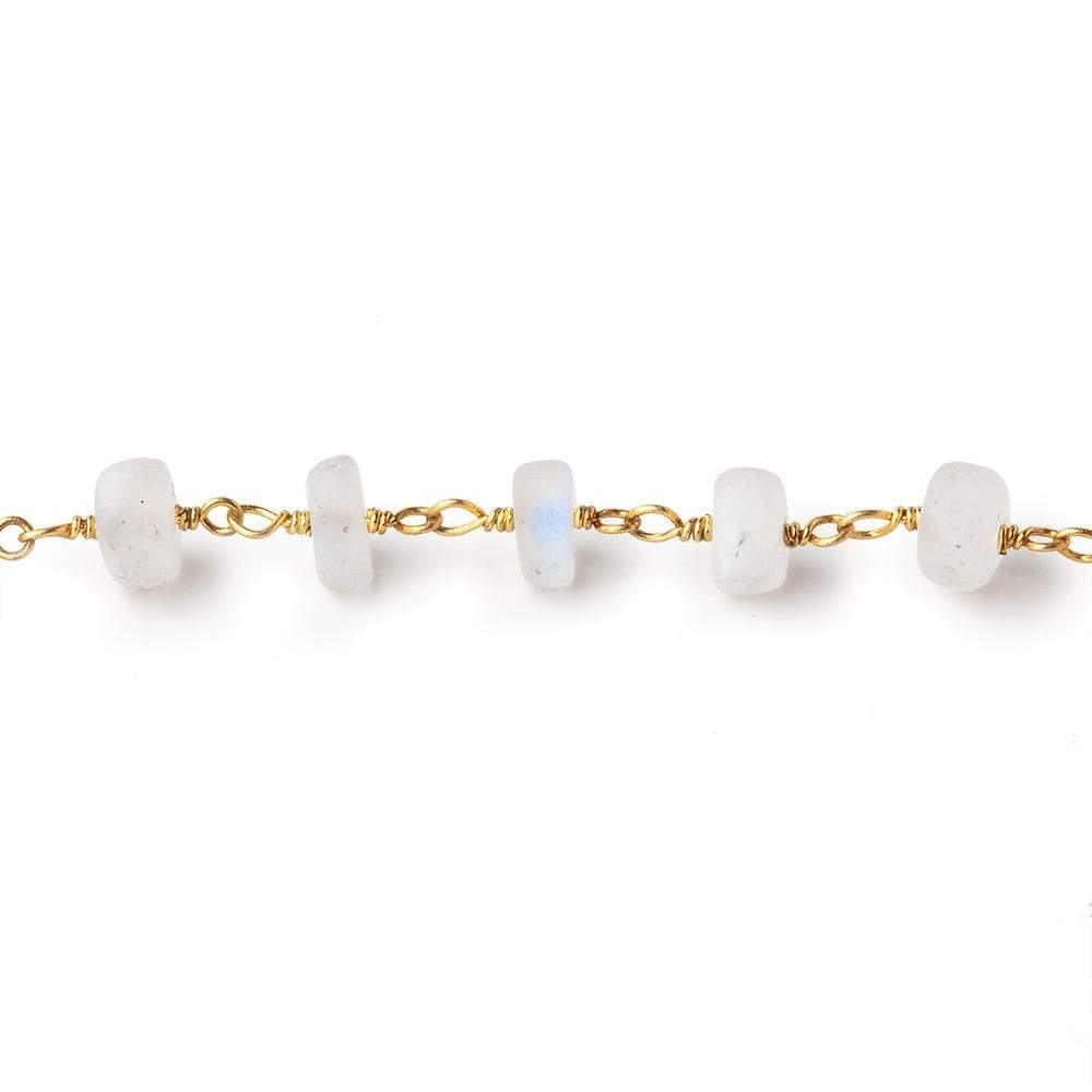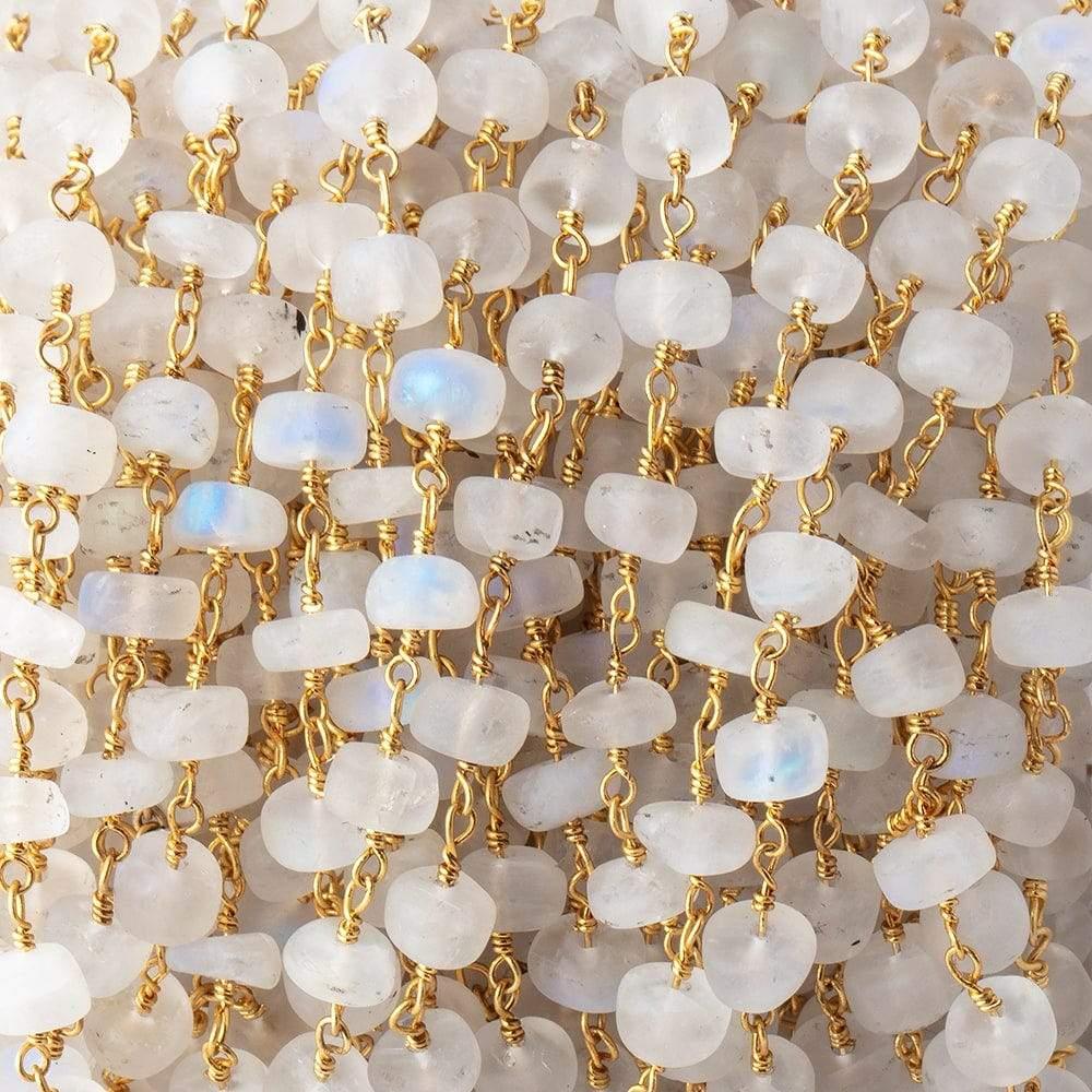 5mm Matte Rainbow Moonstone Plain Rondelle Beads on Gold Plated Chain is our own custom manufactured hand-crafted gemstone rosary chain sold by the foot. 3 quantity = 3 continuous feet.