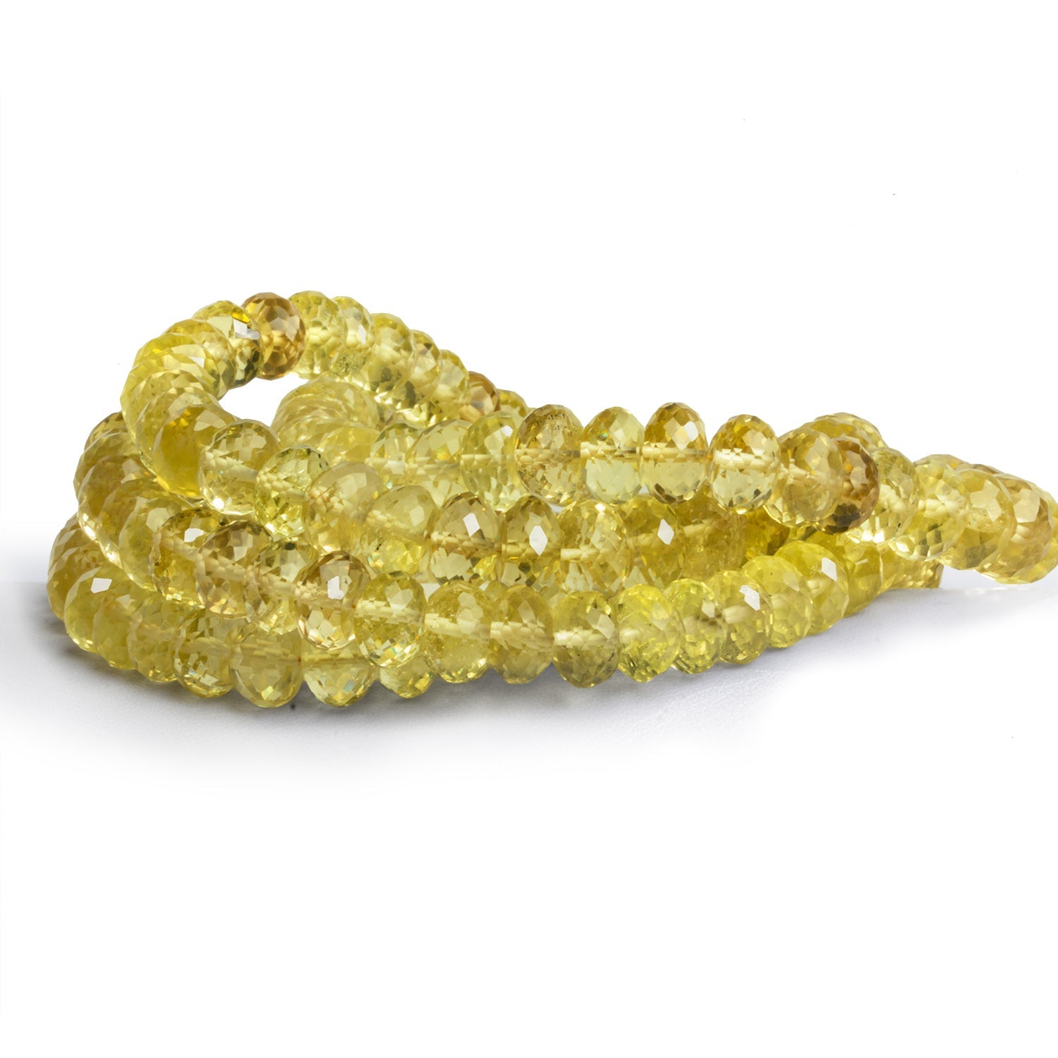 These Lemon Quartz faceted rondelles glow with a bright, sun-washed yellow that brings instant warmth and light to any design. Cut with crisp, even faceting and strung in a smooth size graduation from approximately 6–10mm, these beads catch and reflect light beautifully, creating a lively sparkle across the strand. The transparent body and clean polish highlight the natural clarity of the quartz, giving these rondelles a bright, uplifting presence that feels both fresh and elegant.