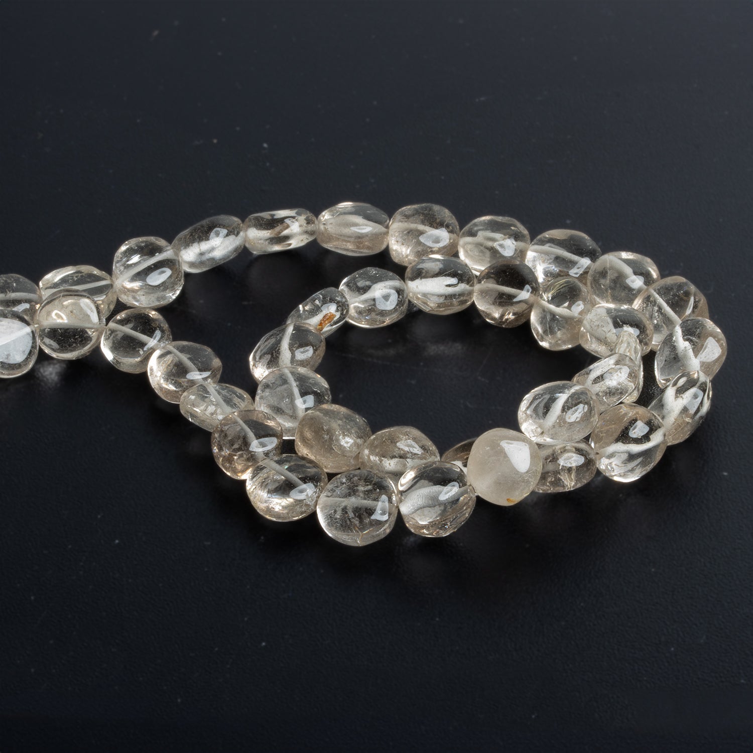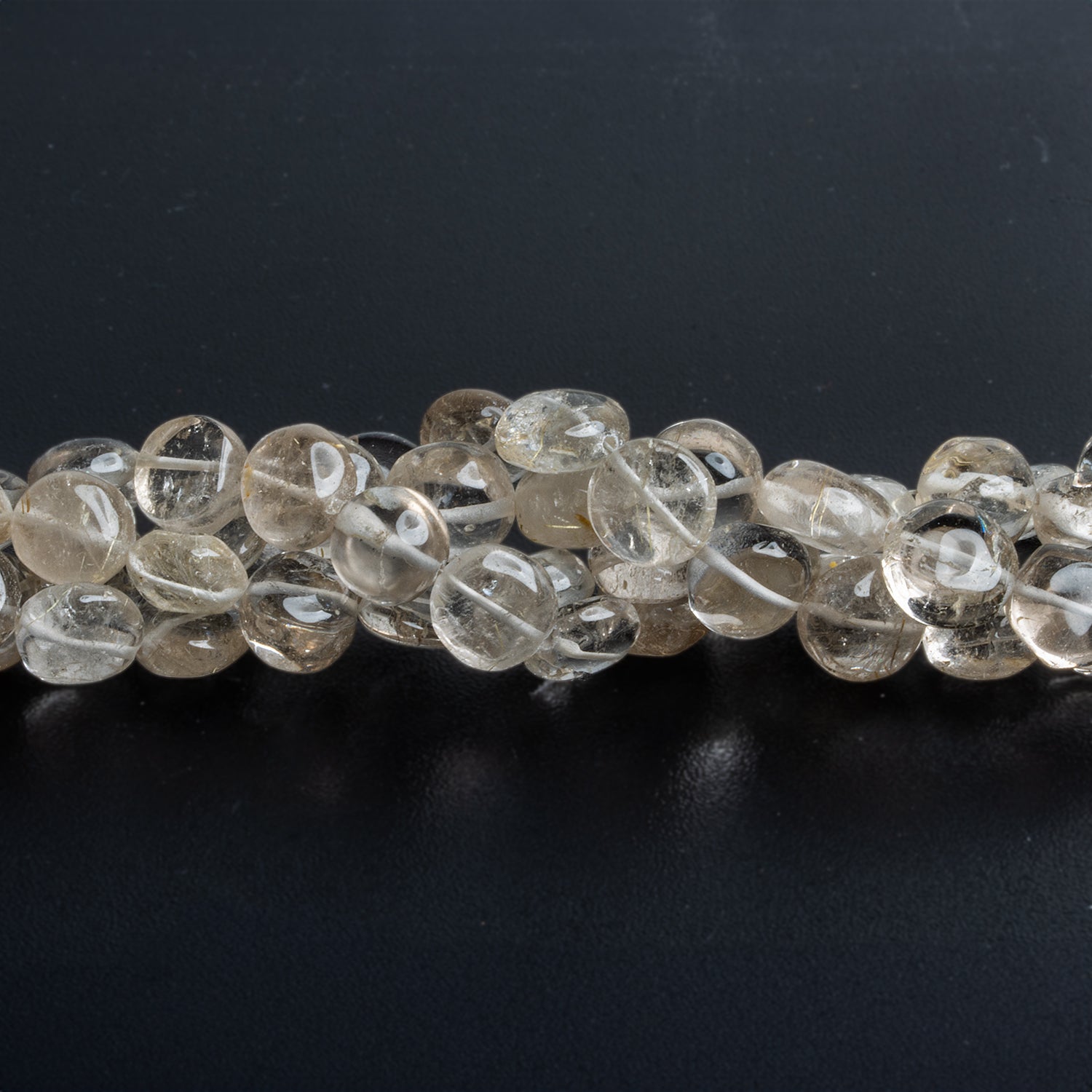 Beads range from about 6mm to 10mm in diameter. These unique and beautiful beads show off a smooth polish that acts as an excellent viewing angle to the tiny striations and textural elements that give the stone its name. Expect a champagne tone evident throughout the strands with a relatively sparse allotment of rutile in each bead. These beads have a handcut appearance making them perfect for designs calling for organic or naturalistic aesthetic qualities.