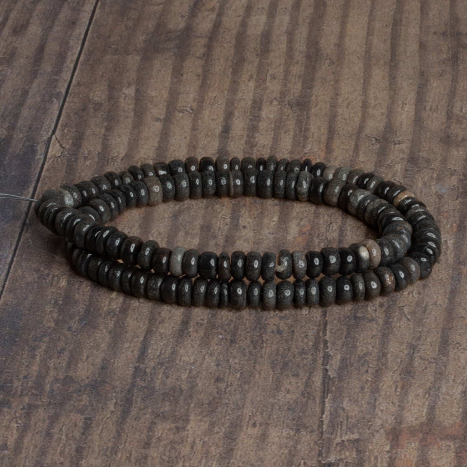 These beads measure 6.5mm in diameter with a 0.5mm drill hole. These stunning, specially curated strands feature a highly unique charcoal grey color palette. Our dazzling opal rondelles offer a striking appearance perfect for all sorts of designs from necklaces to earrings and bracelets. These unique beauties are destined to inspire jewelry creations notable in their finely speckled texture and high-quality. Beads are color enhanced on a white opal base. We recommend washing these beads in warm water before designing to remove any residual dye that has not set into the piece.