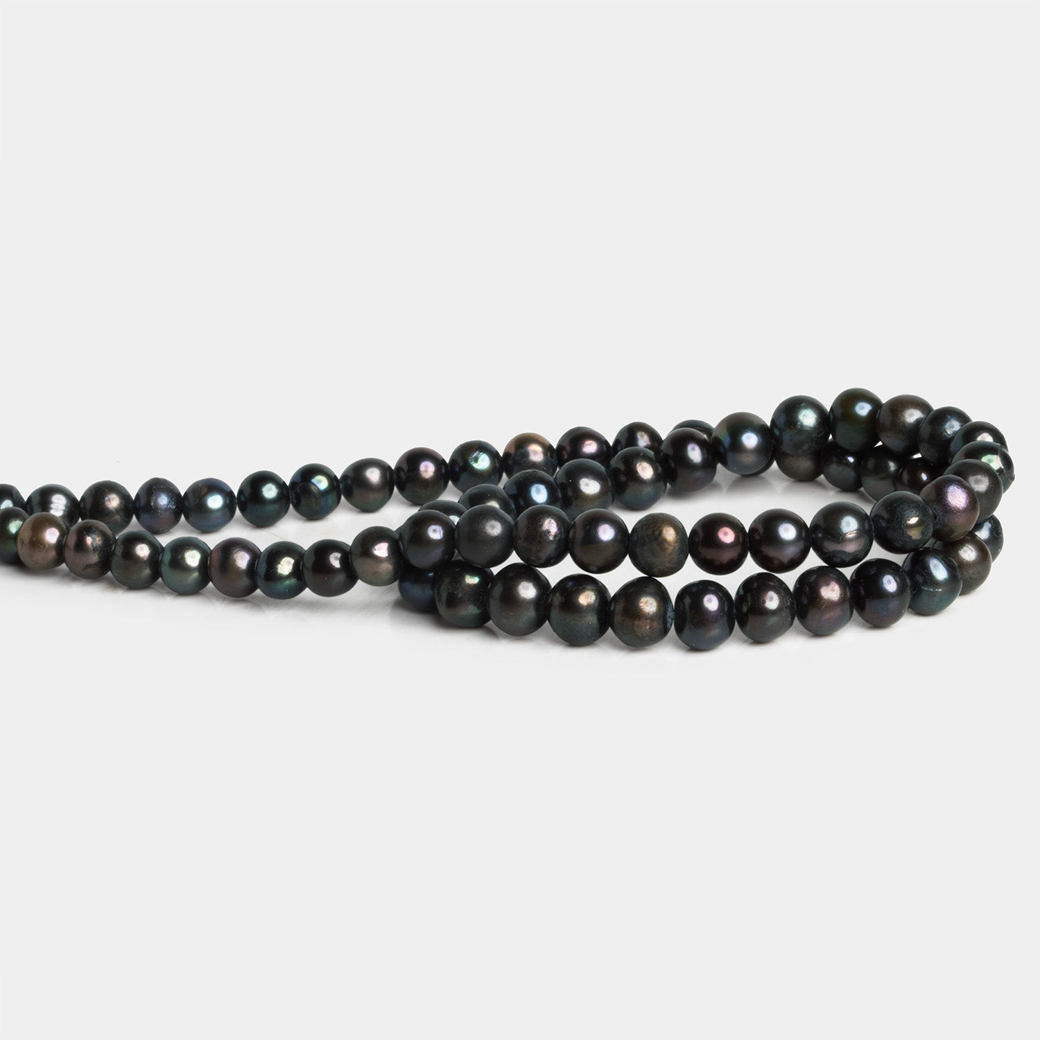 These Dark Slate Gray Freshwater Pearls measure approximately 6mm to 7mm in diameter and feature a luxurious depth of tone that shifts subtly between charcoal, espresso, and indigo under the light. Their rich, moody coloration and soft, lustrous sheen make them a striking option for bold, refined designs.