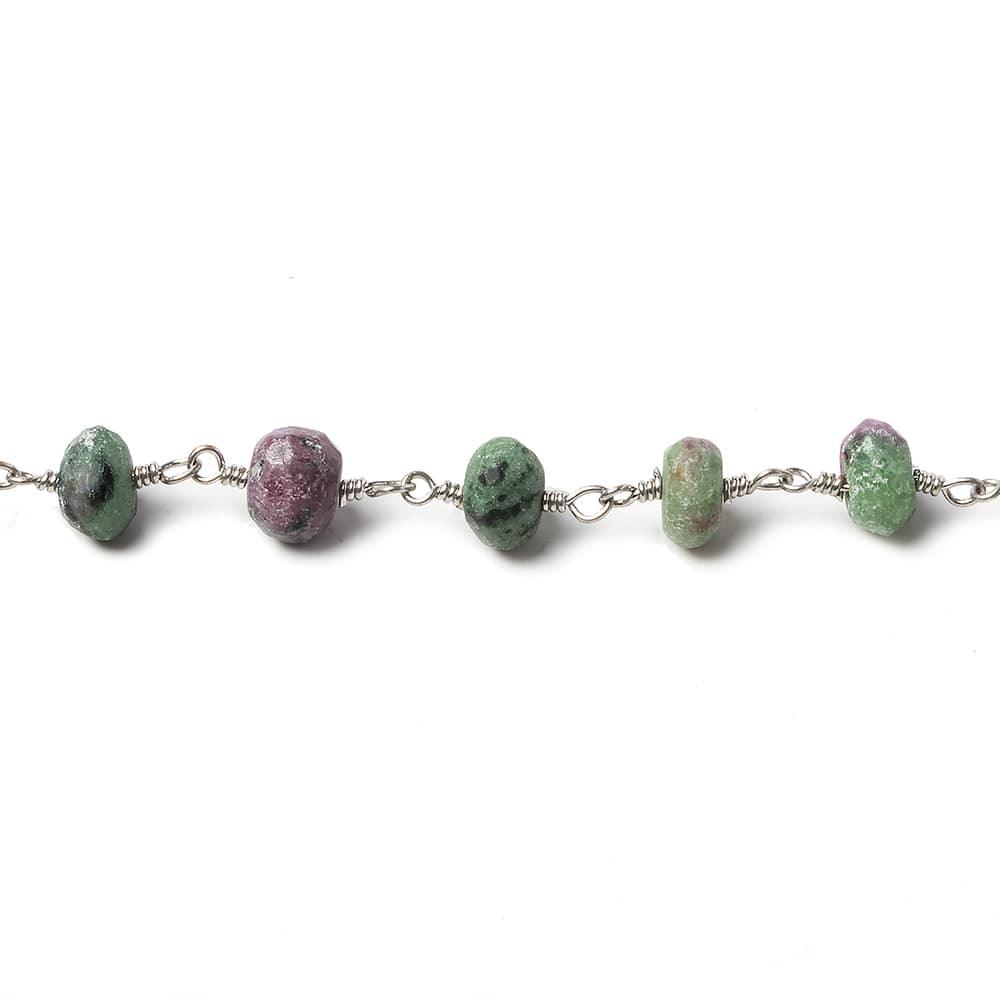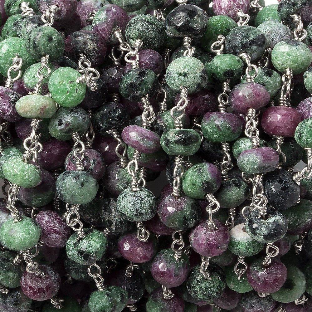 6-7mm Ruby in Zoisite faceted rondelle Silver plated Chain by the foot 32 beads