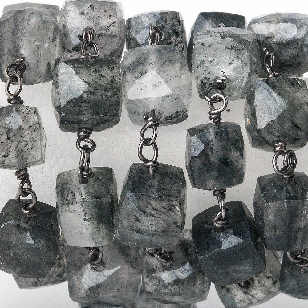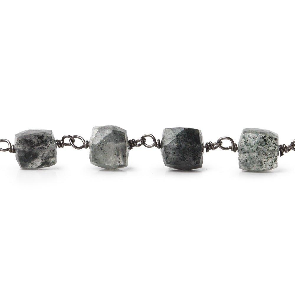 6-7mm Tourmalinated Quartz Faceted Cube Black Gold plated Sterling Silver Chain sold as the entire 22 inch length.