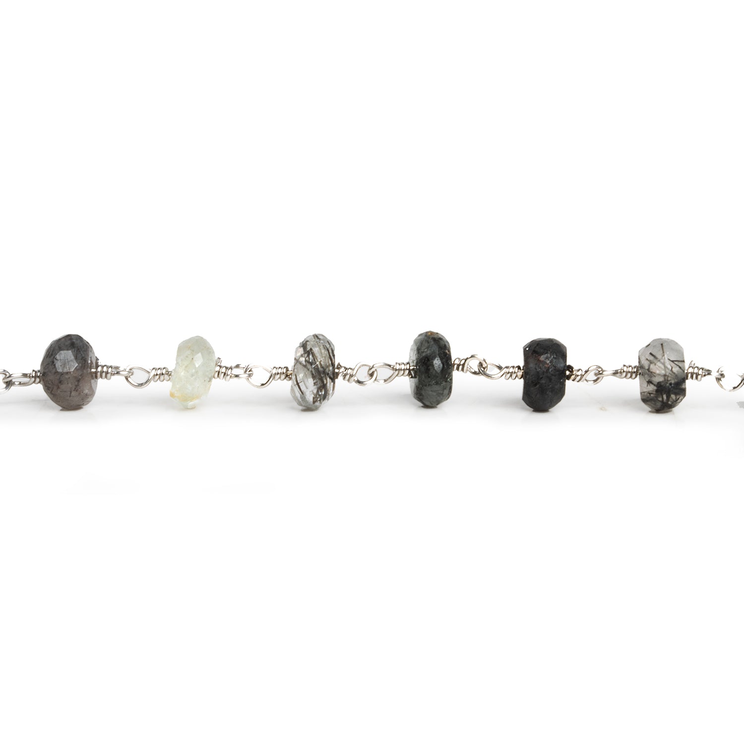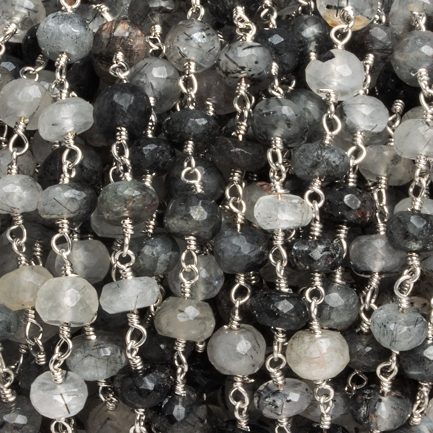 Beads range from about 6mm to 7mm in diameter with about 32 beads per foot of chain. This specially curated, high-grade option features exquisite Tourmalinated Quartz ranging from white to black in tone and filled with the streaks of black Tourmaline that give the stone its name. The pairing with our signature silver plated chain makes for a lighter and higher-contrast appearance worthy of luxurious statement Jewelry Designs. Fans of our gemstone chain should jump on this exclusive offering perfect for necklaces, earrings and much more.