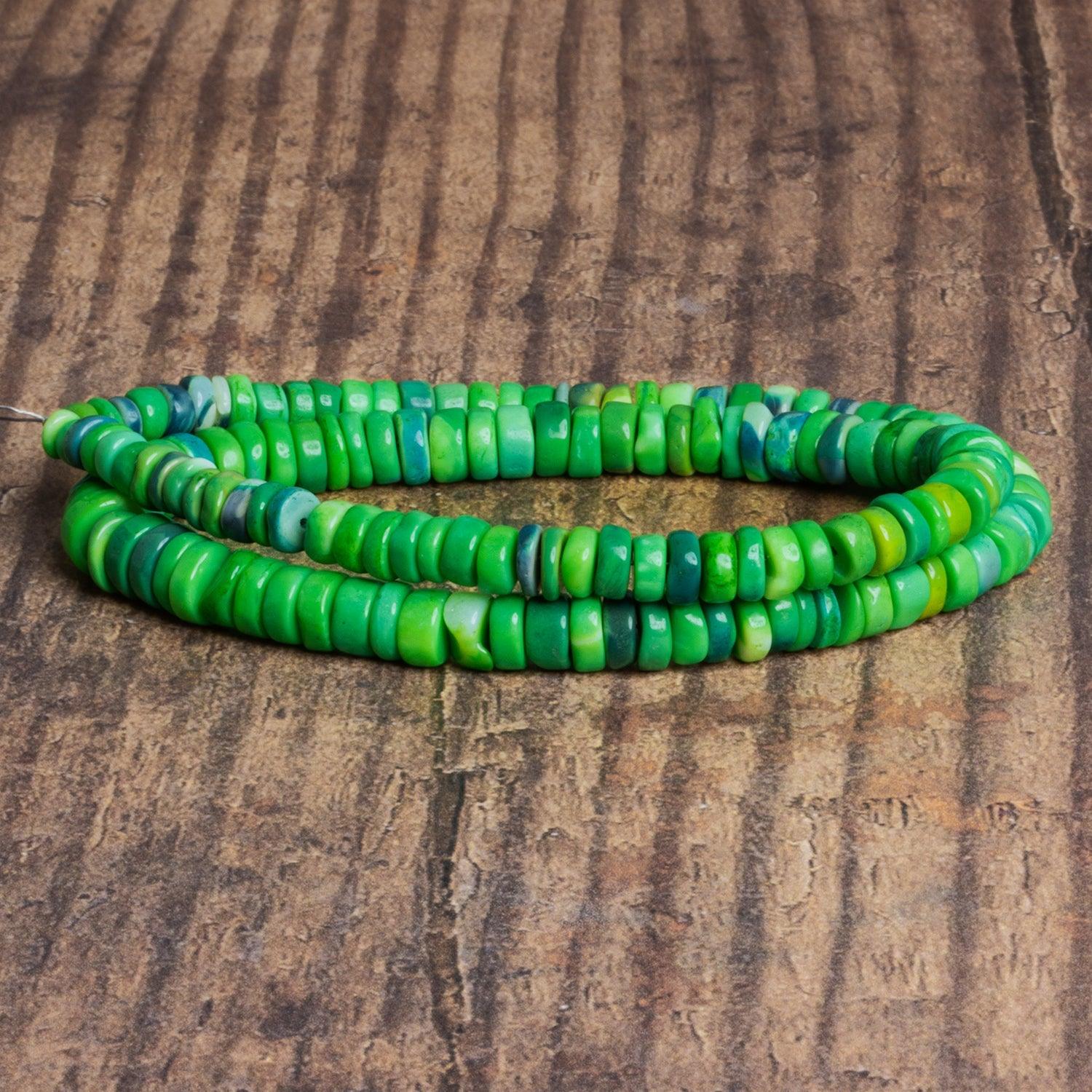Beads are color enhanced on a white opal base. We recommend washing these beads in warm water before designing to remove any residual dye that has not set into the piece.