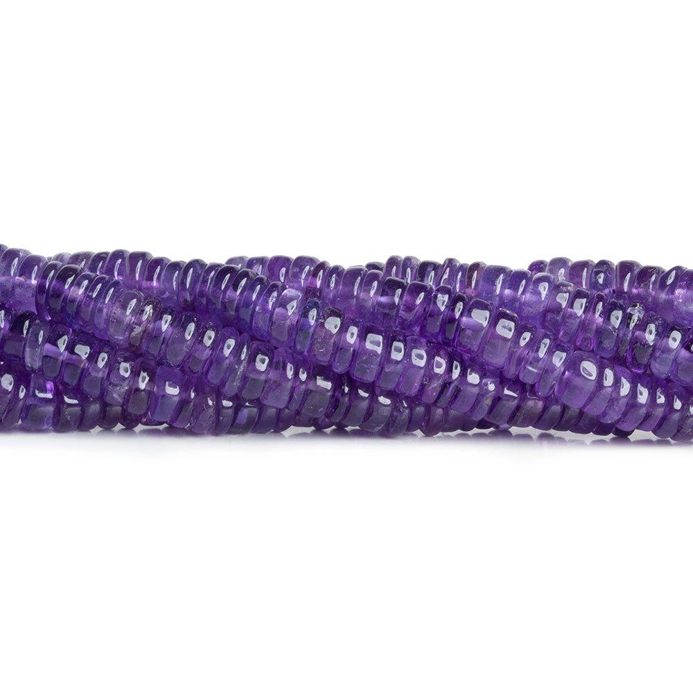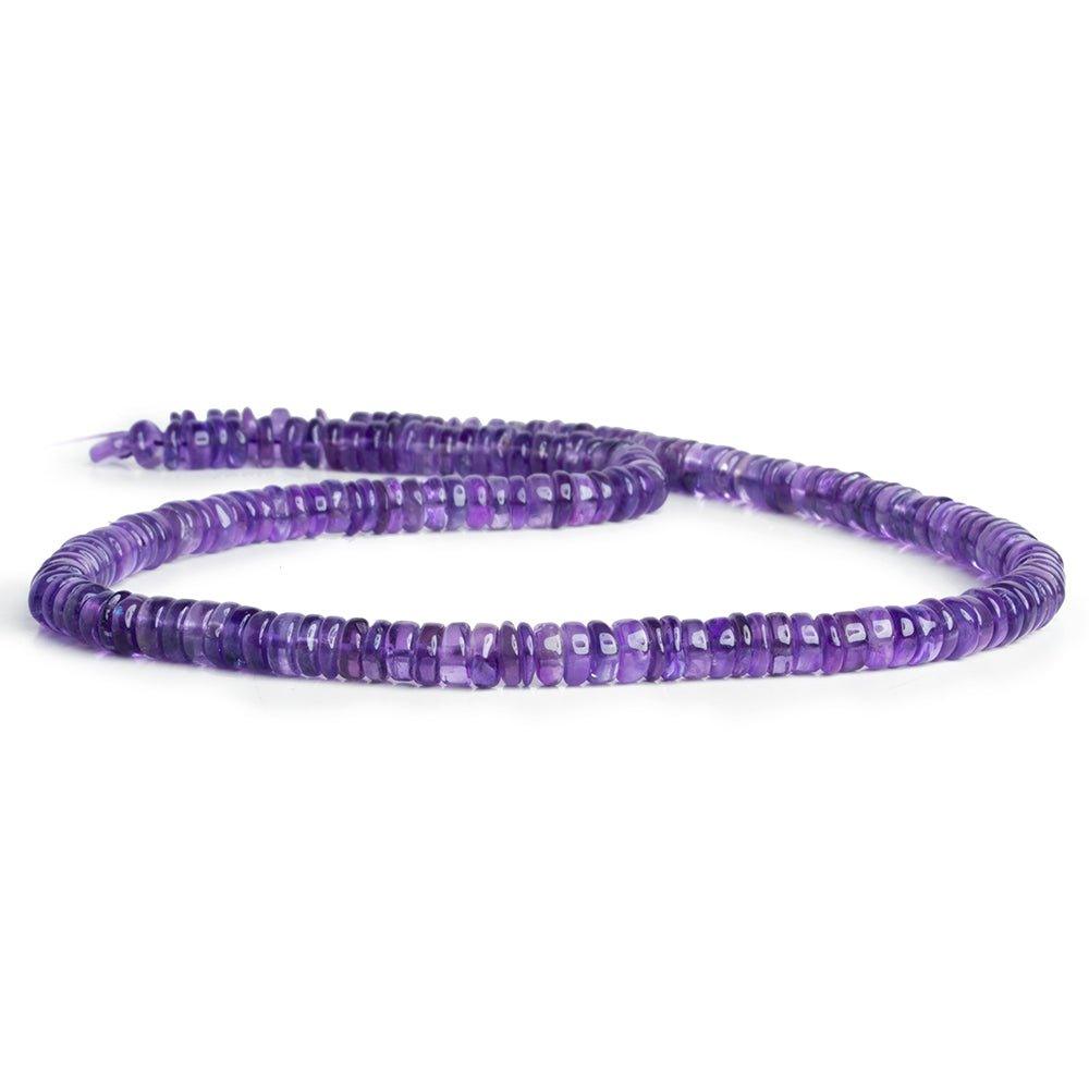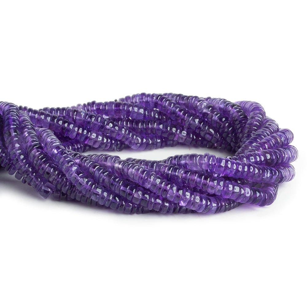These Amethyst Plain Heishi Beads have a consistent diameter of 6mm. The translucent bodies are known for their vibrant color, unique to Amethyst. Each bead varies slightly in size and shape, following the traditional designs of the Kewa Pueblo people of New Mexico. Also referred to as Hishi, Heshi, and Heishe, the "hee-shee" shape is hand cut from natural Amethyst sourced from South America, creating interesting variations among each bead.