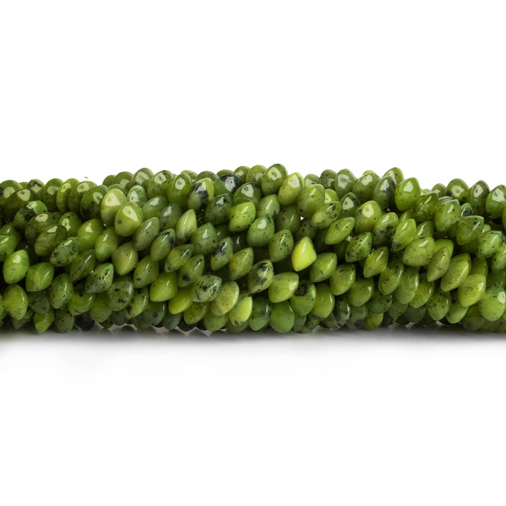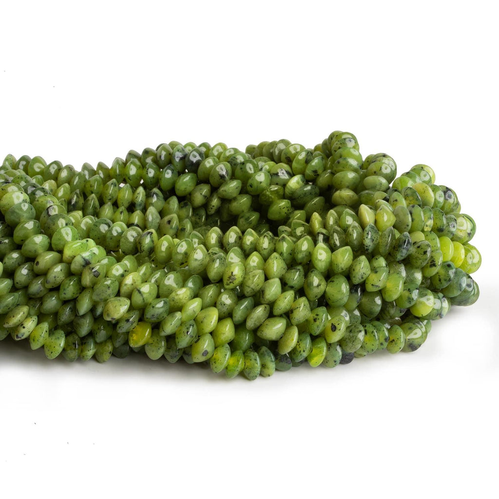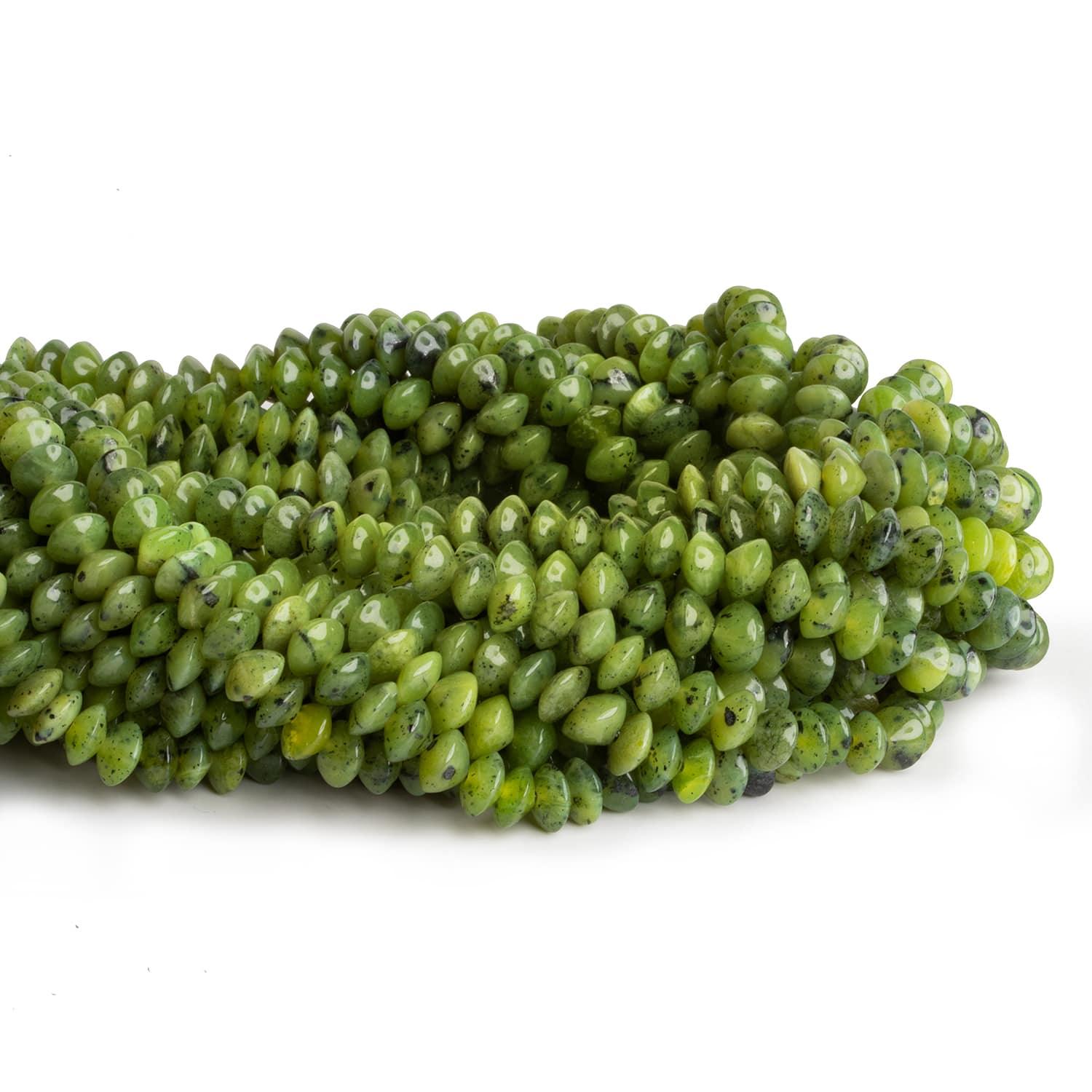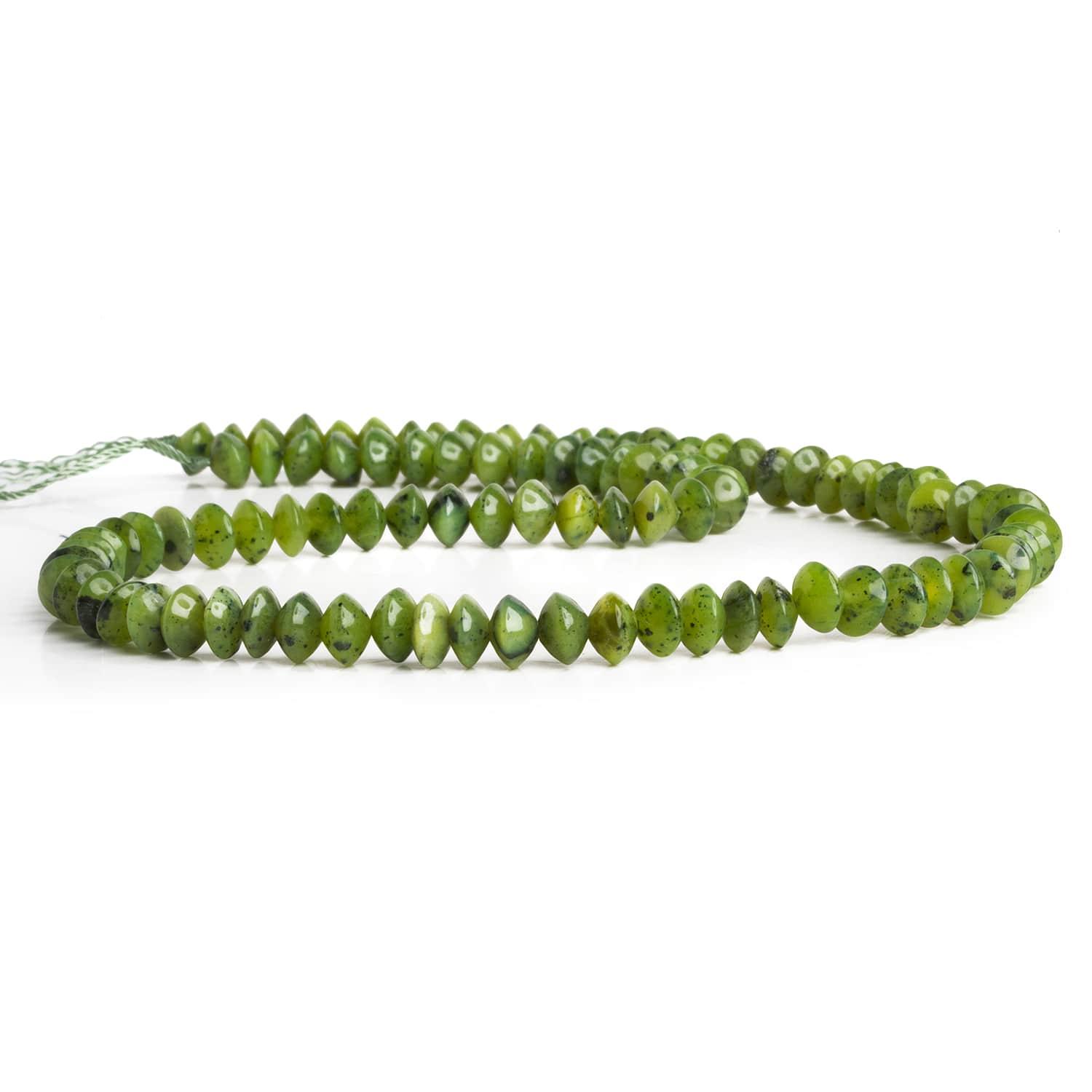 Experience the natural beauty of Genuine Nephrite Jade with our stunning 6mm Saucer Rondelle beads. Each bead features a strong green color with unique black elements, showcasing the natural textures of Jade. Expect minimal thickness variations among each saucer.