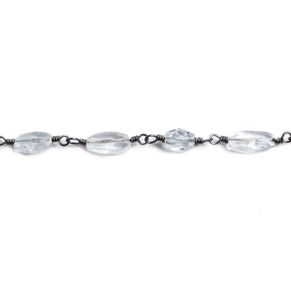 6x4-8x4mm Aquamarine faceted nugget Black Chain by the foot 24 pcs