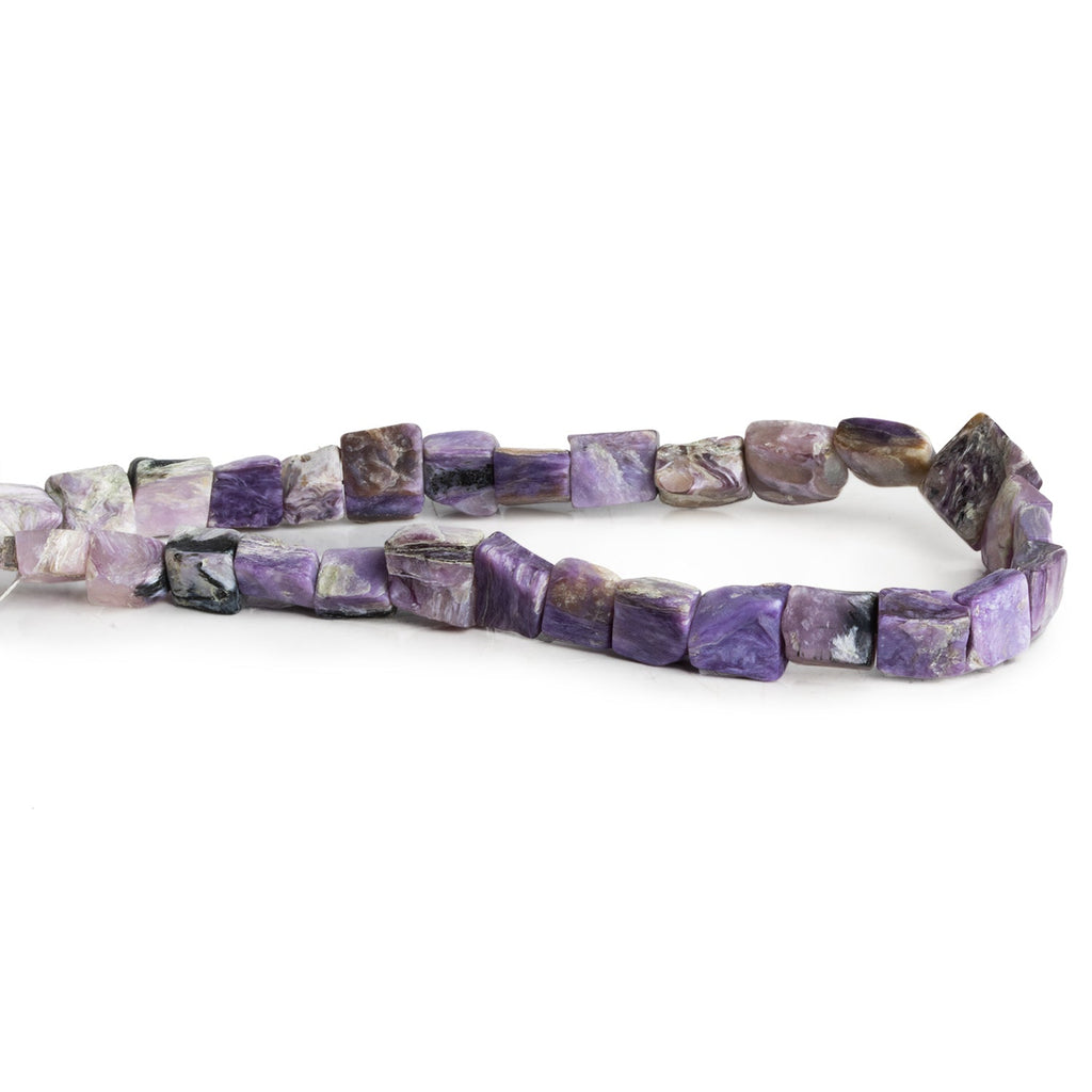 These 6x5mm Charoite Square Nugget Beads are a stunning representation of the rare and highly sought-after charoite stone. Their smooth, polished surfaces display beautiful shades of purple, with swirling patterns of lavender and violet, making each bead truly unique. The natural variations within the stone provide depth and character, resulting in a sophisticated and dynamic appearance.