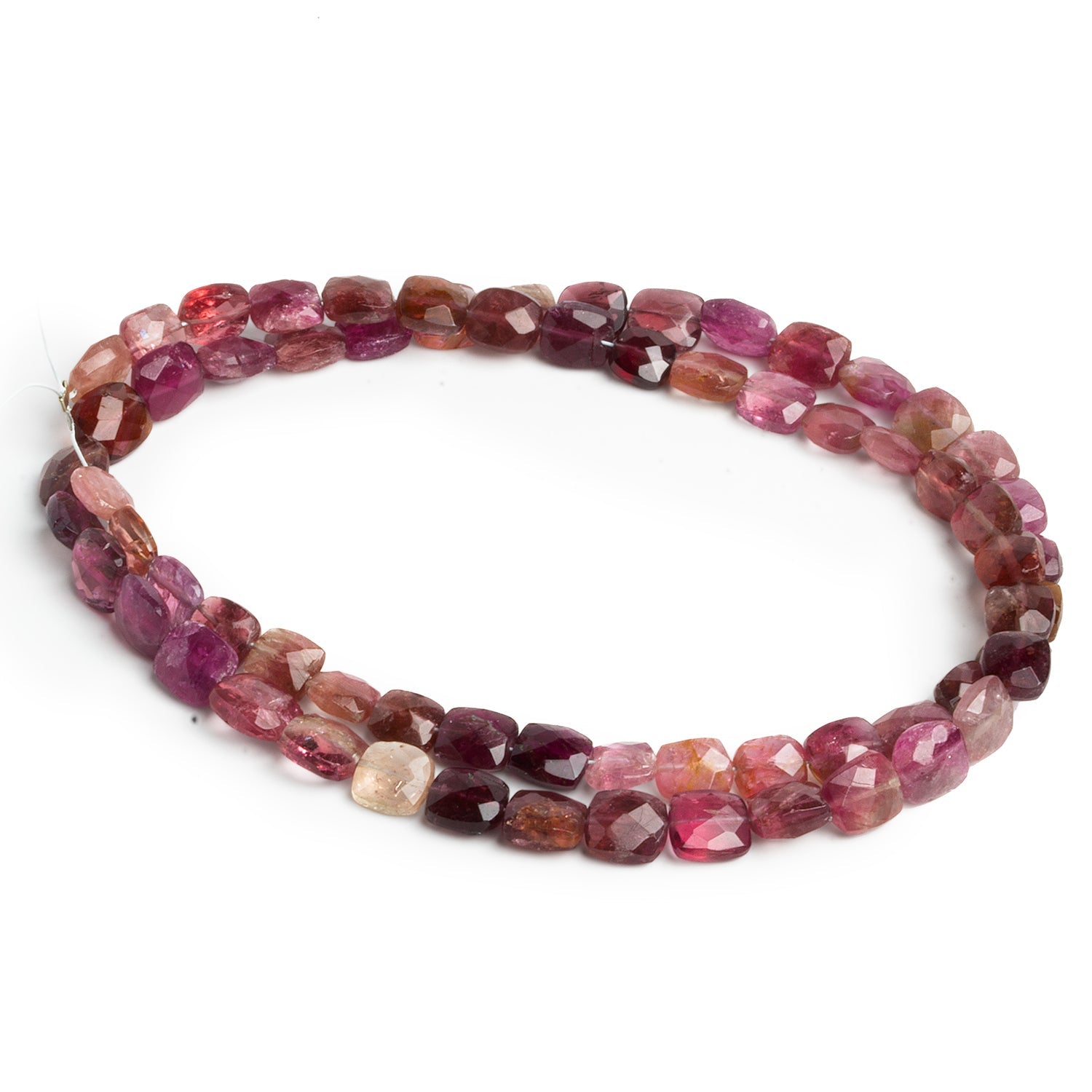 These Pink Tourmaline Faceted Cushion Beads showcase a stunning gradient of rosy hues, from delicate blush and peach tones to rich magentas and deep berry shades. Measuring 6x5mm, each bead is expertly cut into a cushion shape with finely polished facets that enhance the stone’s natural brilliance and color depth. Their vibrant tones and subtle transparency give each strand a romantic, luminous appeal.