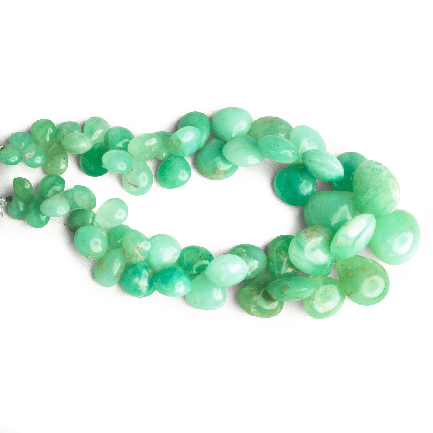 7-17mm Chrysoprase Plain Hearts 9.5 inch 53 beads